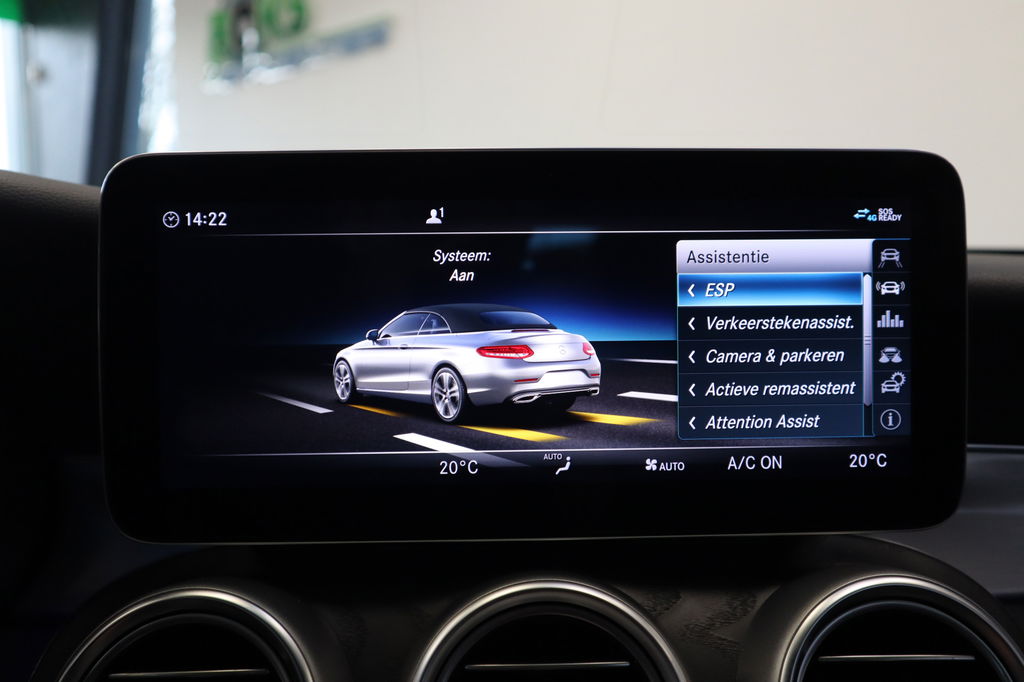 De nieuwste veiligheidssystemen komen in deze Mercedes-Benz C-klasse Cabrio samen. Een belangrijke bijdrage aan de veiligheid onderweg levert de verkeersbord-detectie. Het forward collision warning-systeem berekent via een sensor de afstand tot het verkeer vóór u en komt in actie als er gevaar bestaat van een botsing. Verder is deze auto uitgerust met dodehoekdetectie, hill hold functie, autonoom remsysteem en bandenspanningcontrolesysteem.
