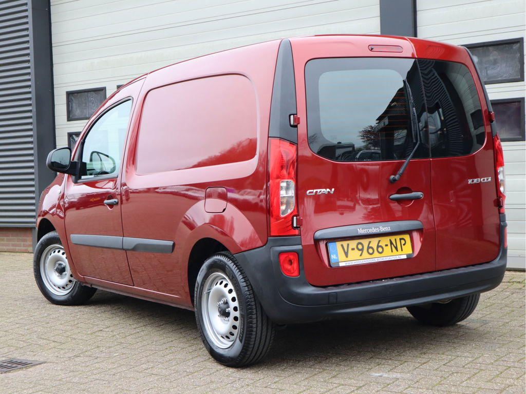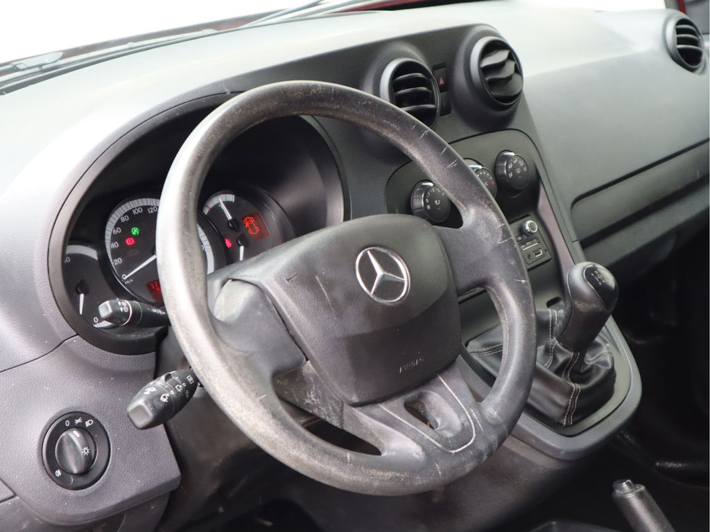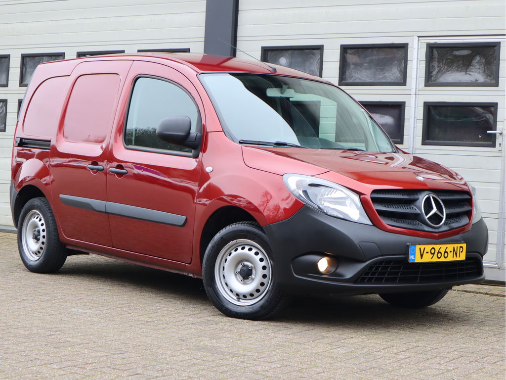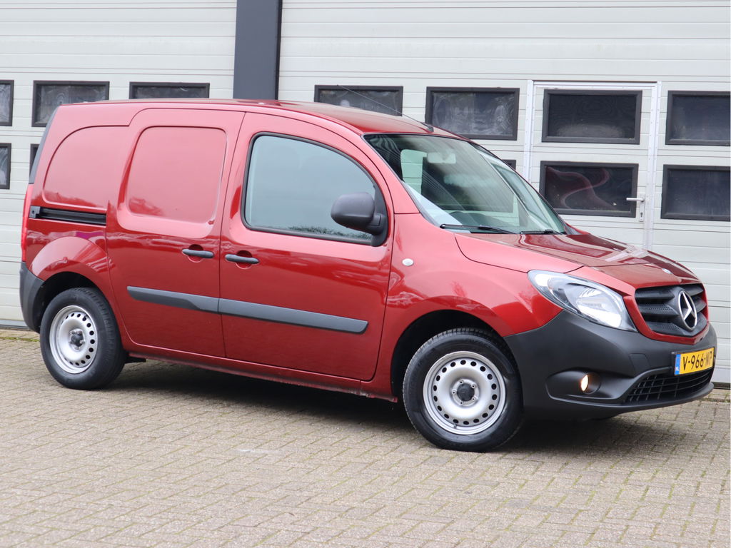 Wanneer je over de Autobahn zoeft in deze krachtige Mercedes-Benz Citan, begrijp je waarom Duitse auto's wereldwijd zo hoog staan aangeschreven. Met zijn dieselmotor en handgeschakelde vijfversnellingsbak is dit een prima auto voor nog vele kilometers. Passagiers stappen gemakkelijk in en uit door de schuifdeur met z'n ruime opening. Natuurlijk behoren twee achterdeuren, warmtewerend glas, in hoogte verstelbare passagiersstoel, elektrisch verstelbare buitenspiegels, elektrisch bedienbare ramen voor en snelheidsafhankelijke stuurbekrachtiging ook tot de uitrusting van deze complete auto.Parkeerplekken worden er niet ruimer op. Maar met de aanwezige parkeersensoren krijgt u deze Mercedes-Benz Citan zonder problemen op z'n plaats. De cruise control betekent gemak, comfort en zuinig rijden. In deze auto kiest u zelf uw ideale temperatuur dankzij de airconditioning. Ook buitentemperatuurmeter, centrale deurvergrendeling met afstandsbediening en verstelbaar stuur zijn aan boord.