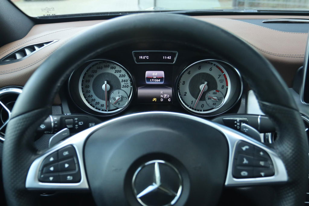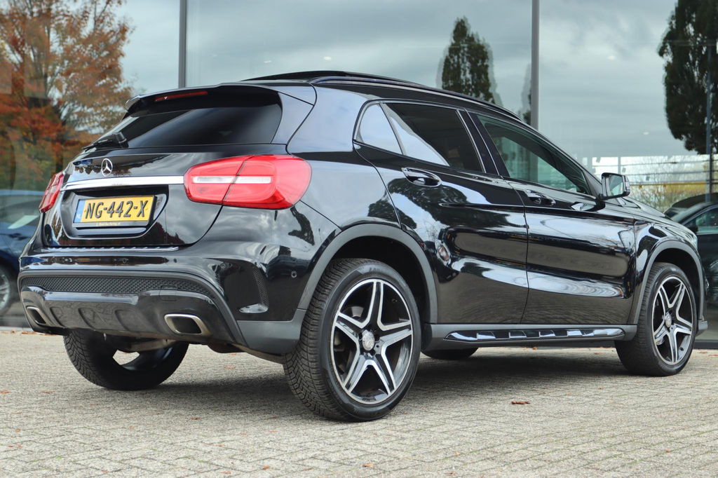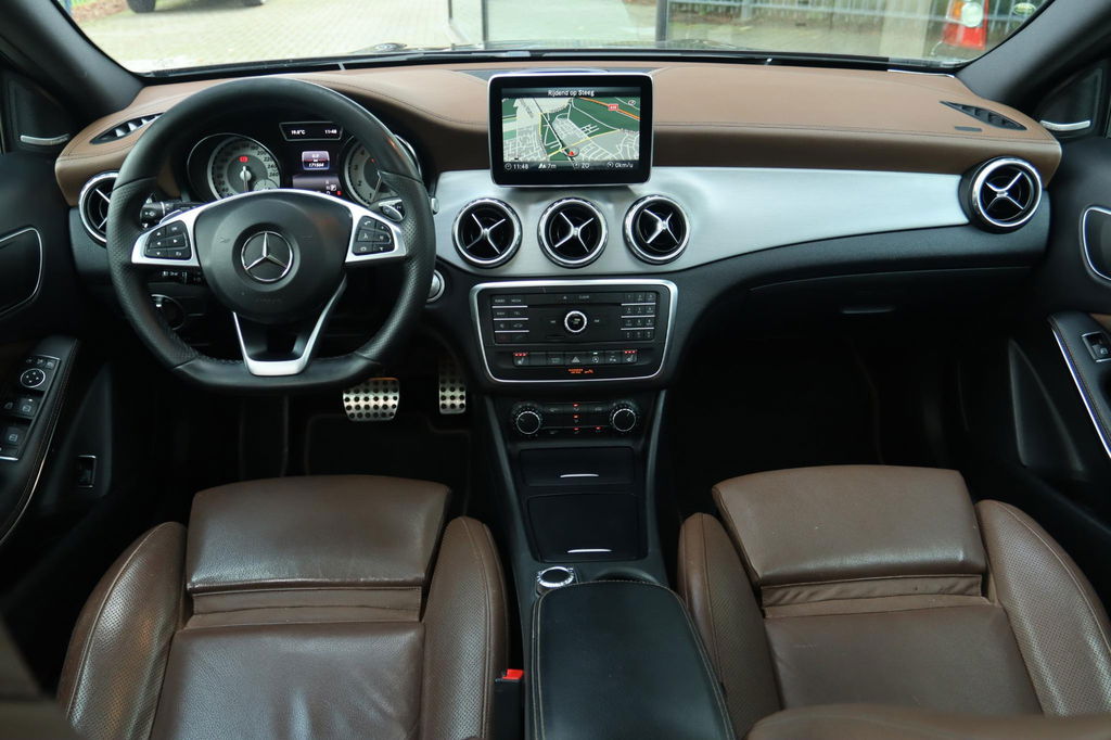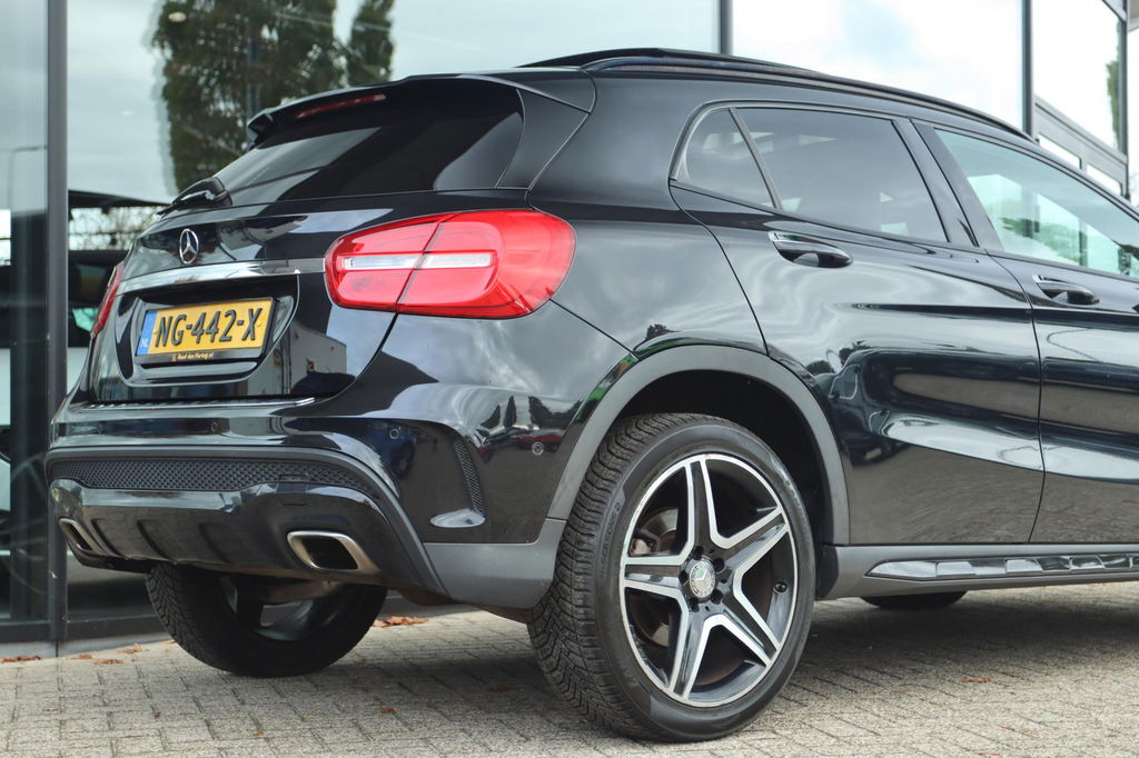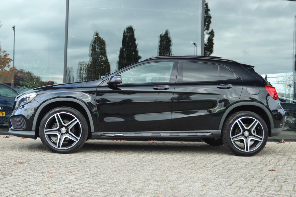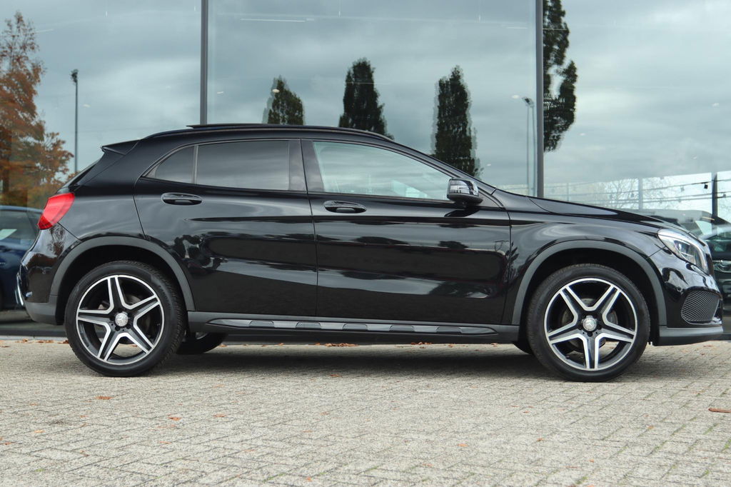 Mercedes-Benz GLA-klasse 200 Prestige AMG Automaat, mooie en nette auto! Boekjes aanwezig. Deze GLA is o.a. voorzien van: Elektrisch Panoramisch dak, Achteruitrijcamera, parkeersensoren voor en achter, adaptieve cruise control, Leder bekleding met verwarmde voorstoelen voor, key-less entry en start, AMG Nightpakket, Harman/kardon geluidsinstallatie, navigatiesysteem full map, elektrisch bedienbare achterklep, dodehoekdetectie, Dynamic select, schakelmogelijkheid aan stuurwiel, xenon koplampen etc!