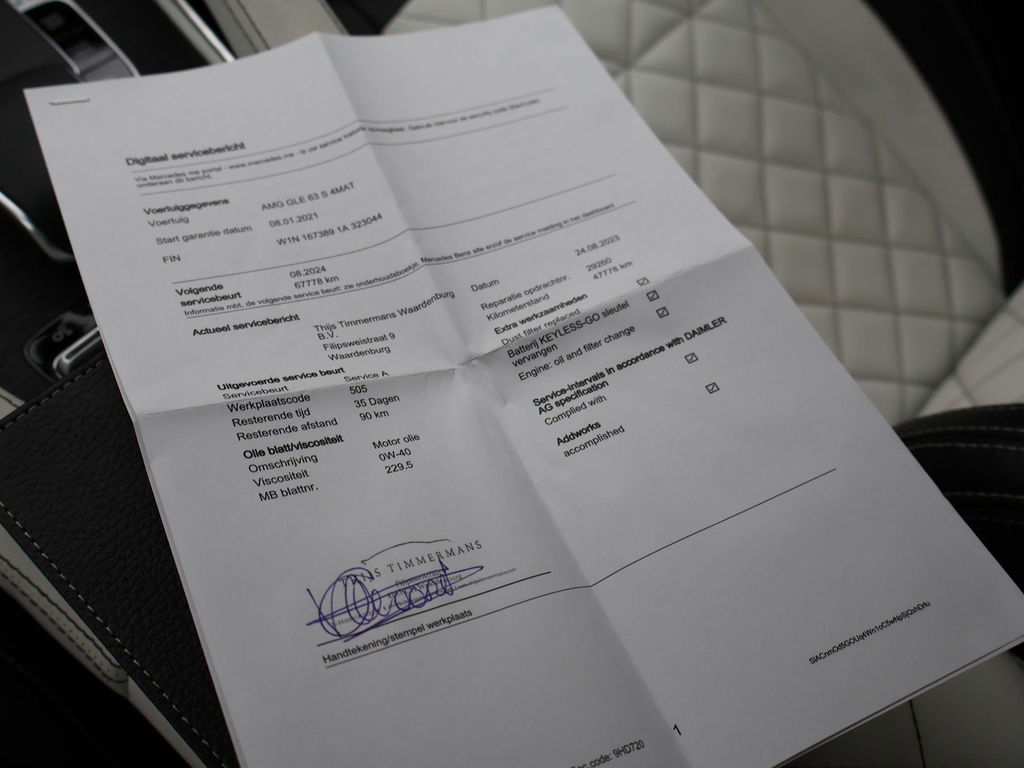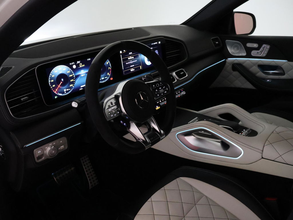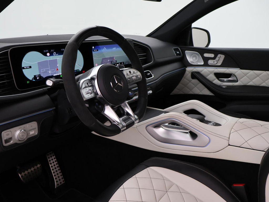 Nieuw model GLE Coupé 63 AMG S 612 PK 4.0 V8 Bi-Turbo 4Matic+ in het Manufaktur Diamantweiss Bright metallic (kleur 799) met Custom made leder exclusief nappaleder wit + zwart met diamond stitching inclusief deurpanelen en middenconsole met contrasterend stiksel. RDW nieuwprijs 226.299 euro, Volledige onderhoudshistorie online bij Mercedes-Benz bijgehouden en aanwezig, Deze auto is door onszelf in 2021 met 6 maanden oud bij het verkooppunt van de Mercedes-Benz fabriek in Duitsland gekocht en geïmporteerd, daarna van 1 Nederlandse eigenaar geweest. Sportuitlaatsysteem AMG met originele elektronisch regelbare kleppen in de einddemper + extra kleppen voor de einddemper op afstandsbediening te regelen. 22 inch AMG breedset velgen, Sfeerverlichting met tientallen kleuren en verschillende kleurcombinaties, Adaptive cruise control Distronic, Dodehoek assistentie, Lijnassistentie, Burmester Premium sound, Treeplanken, Donker glas achter, Panorama schuif/kanteldak, Draadloze telefoonlader, Full LED koplampen, Widescreen digitale cockpit met verschillende thema's en breedbeeld MBUX Navigatie + Apple Carplay / Android Auto. Elektrische stoelverstelling met geheugen links en rechts, Stoelverwarming, Elektrisch verstelbaar stuurwiel, Elektrische achterklep, Luchtvering met regelbare rijhoogte, Zwarte buitenspiegels en achterspoiler, 360 graden surround view camerasysteem, AMG Night Pakket, DAB+ Digitale radio, Verlichte AMG dorpellijsten, 4 zwarte AMG uitlaattips, Verkeersbordenherkenning, Verkeerslichtweergave, Volledig leder dashboard, Rode remklauwen, LED achterlichten, Eikenhout grijs openporig dashboard inleg, Nappaleder + Microvezel AMG Sportstuurwiel, Luchtkwaliteitspakket met luchtverfrissing, AMG Drive Unit stuurwieltoetsen.