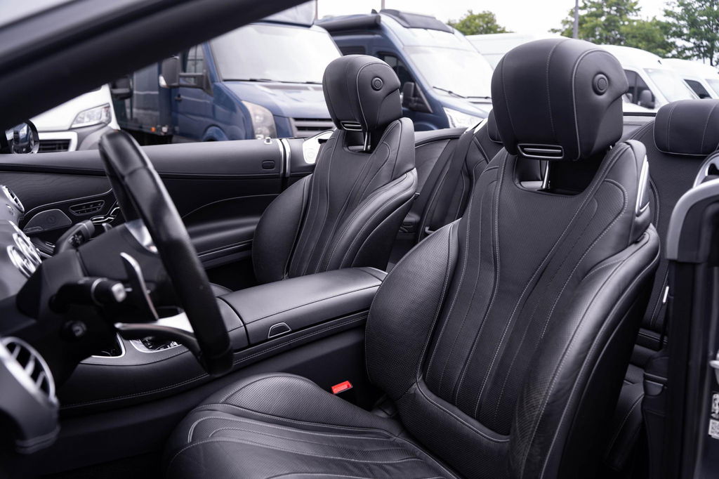 De nieuwste veiligheidssystemen komen in deze Mercedes-Benz S-klasse Cabrio samen. De camera van de verkeersborddetectie herkent verschillende soorten verkeersborden en toont deze op het dashboard. Het Lane-keeping systeem zorgt voor een automatisch constante positie binnen de rijstrook. Afdwalen is uitgesloten. De actieve dodehoekdetectie helpt ongelukken te voorkomen. Met voorzieningen als head-up display, forward collision warning system, nachtzichtassistentie, vermoeidheidsherkenning, frontale botsbescherming en bandenspanningcontrolesysteem, bent u altijd veilig onderweg.