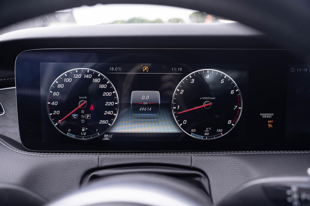 Via het digitale dashboard bent u permanent op de hoogte van alle informatie die u nodig heeft voor een veilige rit. Met de hulp van vier camera's, biedt de 360 graden camera op deze auto een panoramisch zicht, wat bijzonder nuttig is bij het parkeren en manoeuvreren. Met adaptive cruise control houdt deze auto automatisch afstand tot uw voorligger. Kilometerstand? Oliepeil? Accuspanning? Allemaal te zien via de app. Overal. Altijd. Dankzij Connected Services. Een subliem geluidsspectrum wordt onder alle omstandigheden geleverd door het high performance audiosysteem. Deze Mercedes-Benz is voorzien van dashboard met spraakbediening, navigatiesysteem met harde schijf, kruisend verkeer detectie, electronic climate control, sportstuur met schakelpaddels en draadloos opladen.