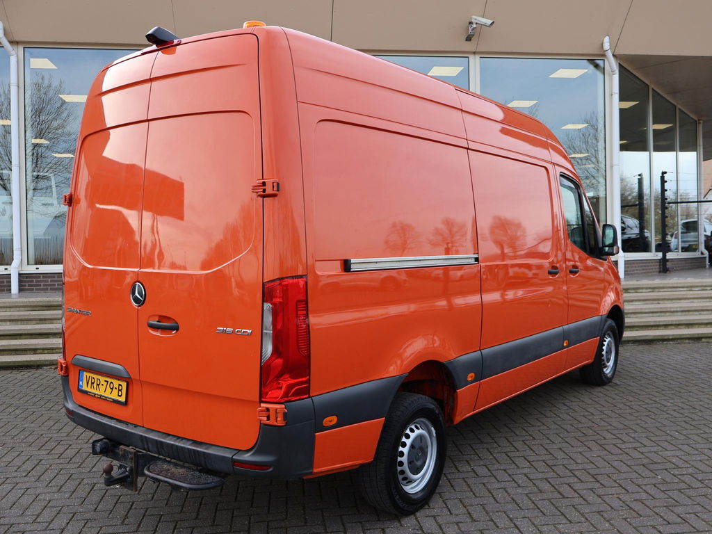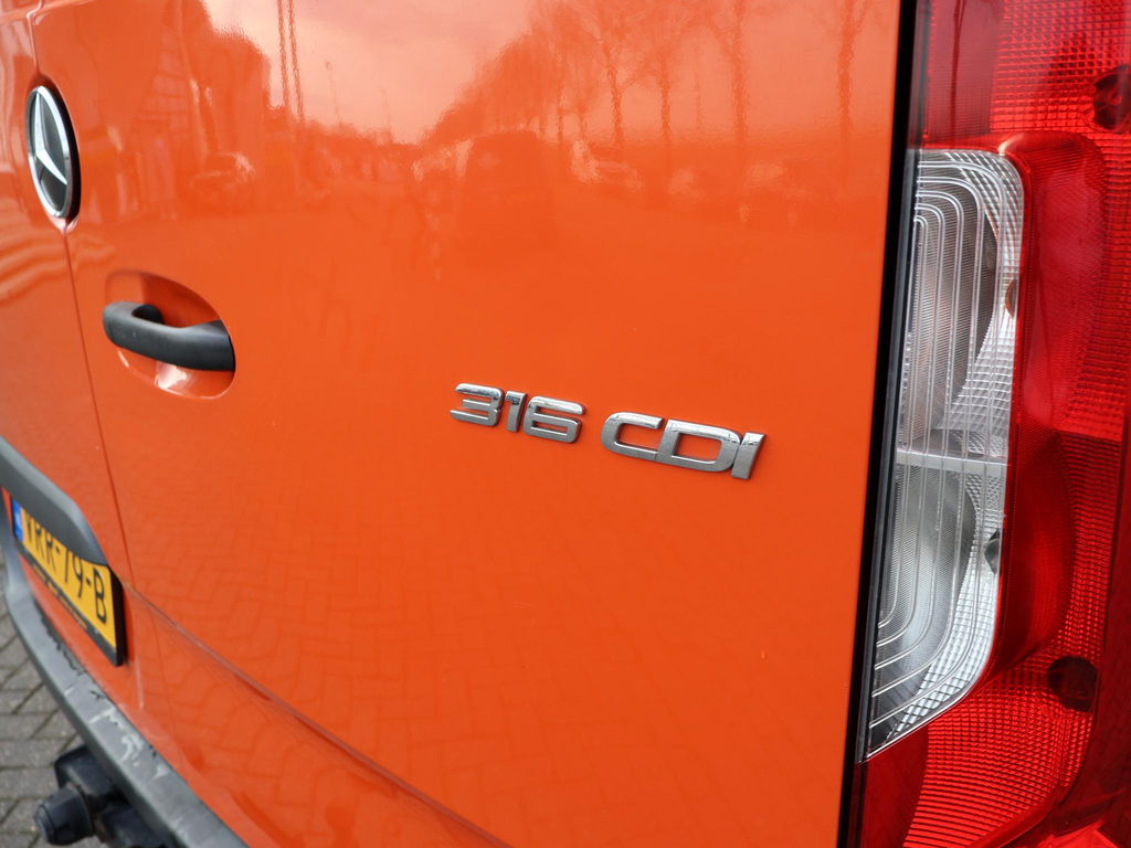 Sprinter L2H2 316 CDI Achterwielaangedreven 2.2 CDI 163 PK met 6 versnellingen en 3500 kg trekgewicht op kenteken, Gave oranje exterieurkleur, Comfort bestuurdersstoel met verlengbaar zitvlak, Achteruitrijcamera, Cruise control, Apple Carplay / Android Auto touch-screen MBUX systeem met appstreaming Google Maps navigatie, Flitsmeister, Spotify, Whatsapp etc, Airco met digitaal display, Standkachel in de laadruimte, Warmte werend voorruitfolie, Werkplaatsinrichting met kasten, lades en bankschroef, Opstap achter, Bluetooth telefoon met audiostreaming en stuurwielbediening, 2 oranje zwaailichten op het dak, Zeer goed onderhouden, Bij 203.000km grote beurt roetfilter vervangen, inlaatspruitstuk vervangen, uitlaat vervangen, remschijven en remblokken rondom vervangen, banden nog geen 10.000 km oud. Prijs is exclusief BTW.