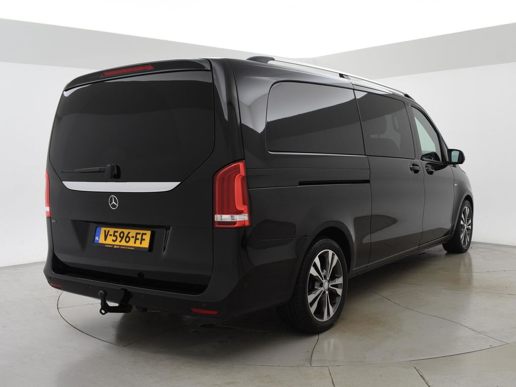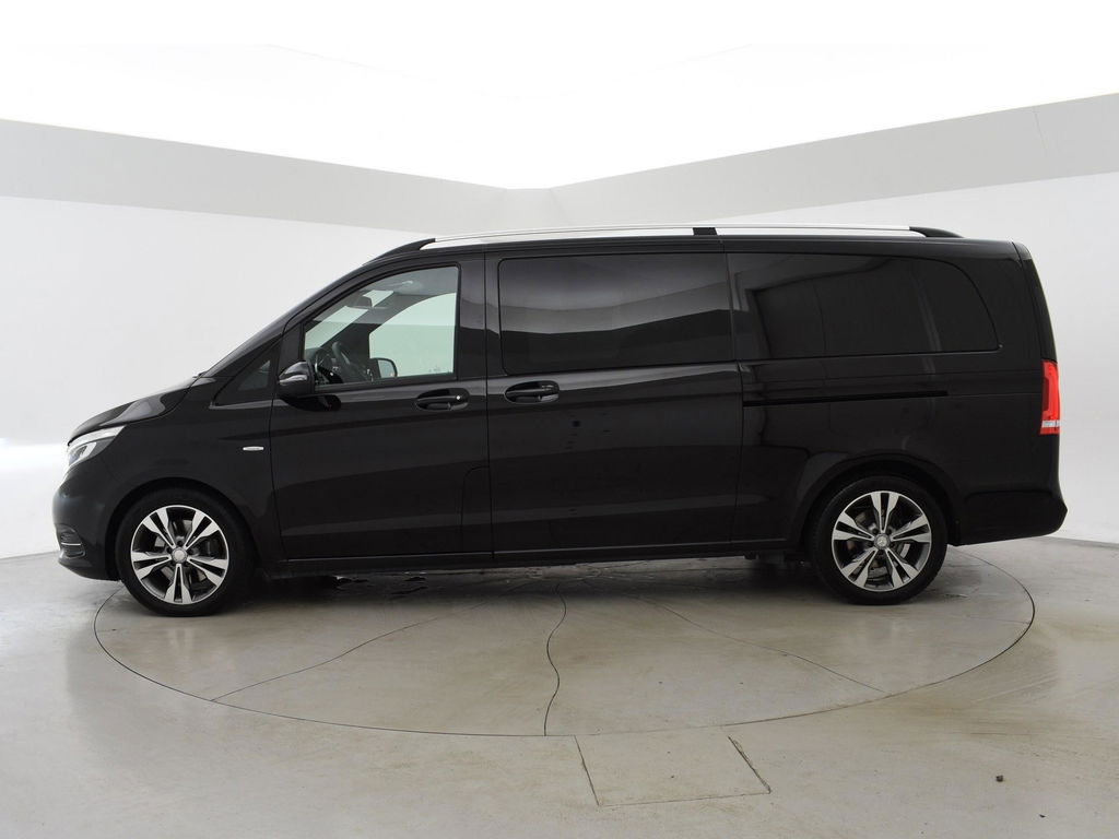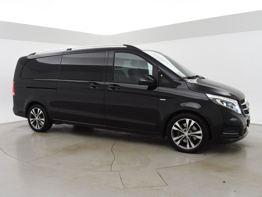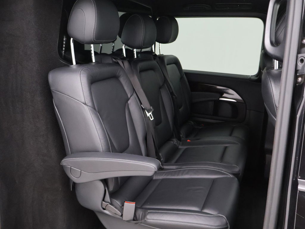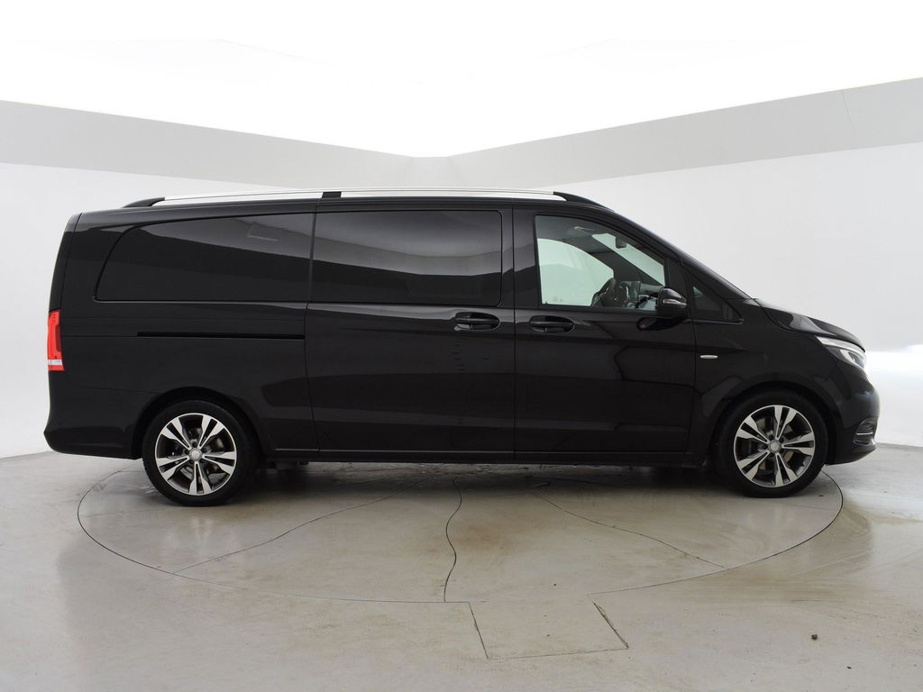 V-klasse 250d 190 PK Automaat dubbel cabine met 5 zitplaatsen, Extra Lang uitvoering L3, Origineel Nederlandse auto, Zwart met zwart leder interieur, Avantgarde Edition, 2 elektrische schuifdeuren + elektrische achterklep, 360 graden surround view camerasysteem, Burmester Premium sound, Full LED koplampen, LED achterlichten, 18 inch lichtmetalen velgen, Sfeerverlichting interieur met verschillende kleuren, Navigatie, Dodehoek assistentie, Lijnassistentie, Verkeersbordenherkenning, Armleuningen achterin, Dakrailing, Vloerbedekking, Zwarte hemelbekleding, 3 zone climate control met display en bediening achterin, Bluetooth met audiostreaming, Trekhaak met cameramodus voor de trekhaak,