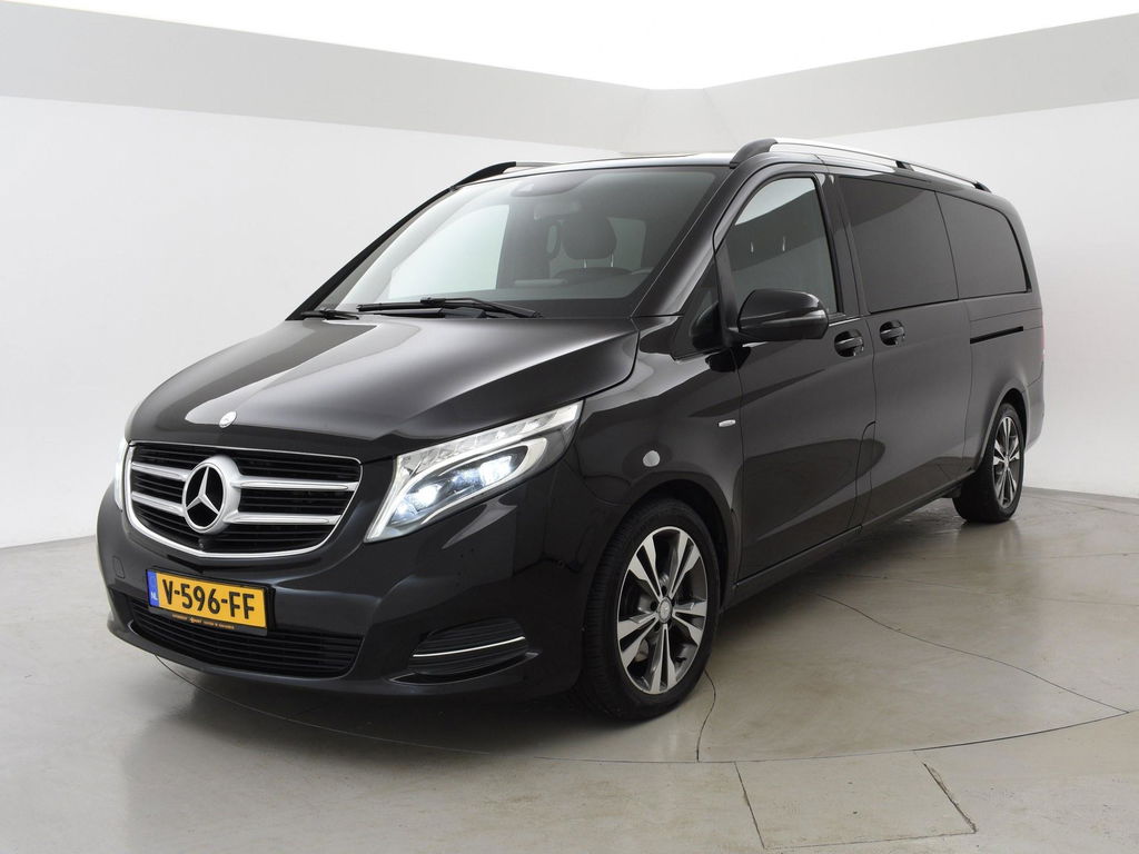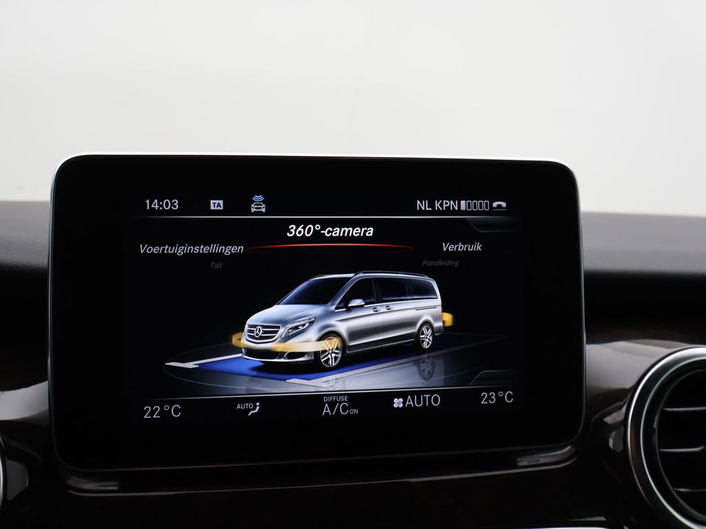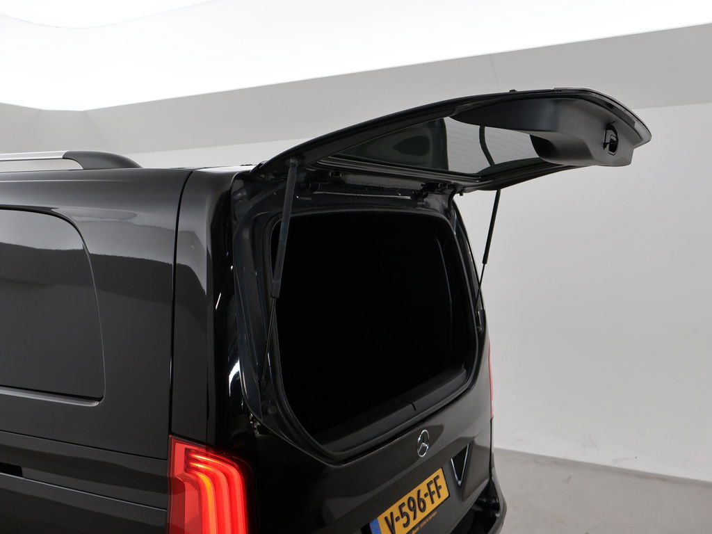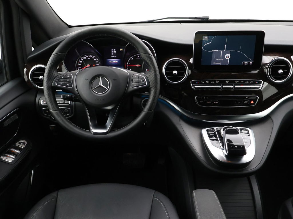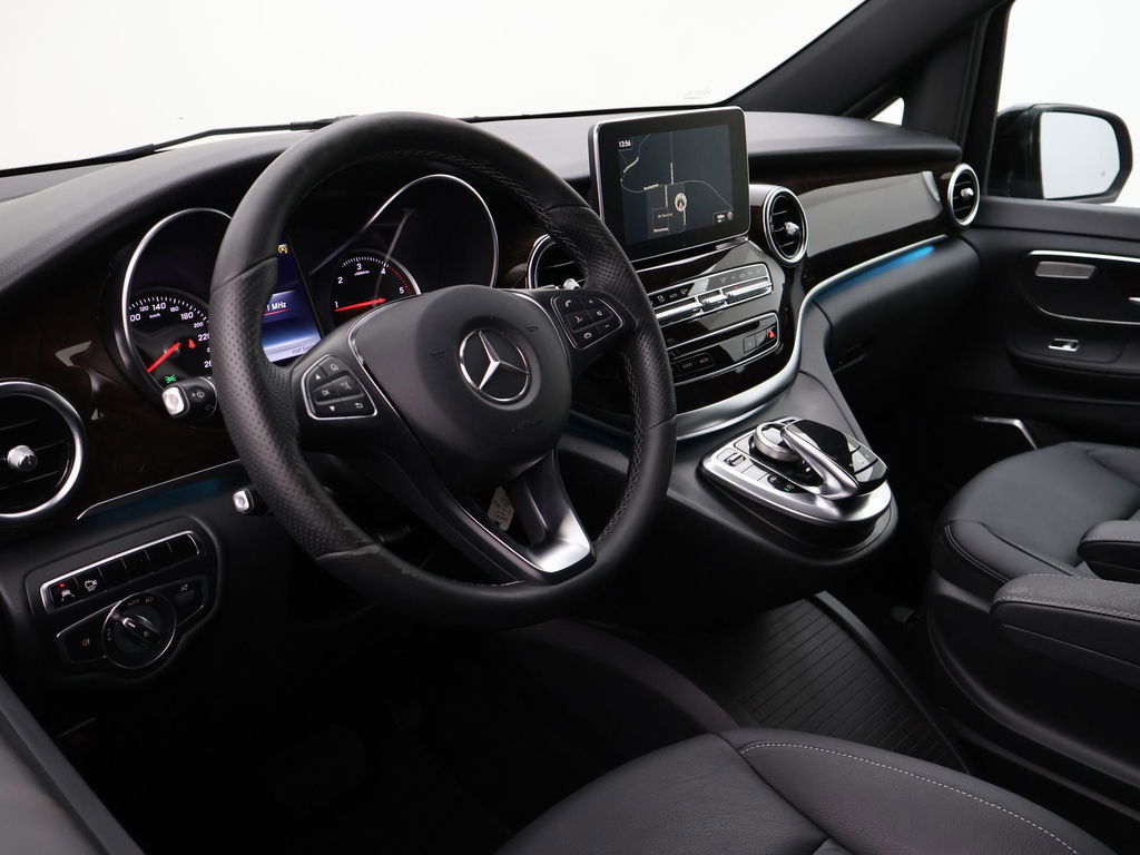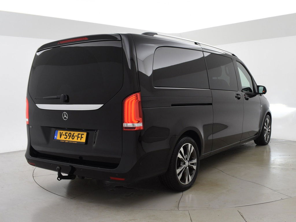V-klasse 250d 190 PK Automaat dubbel cabine met 5 zitplaatsen, Extra Lang uitvoering L3, Origineel Nederlandse auto, Zwart met zwart leder interieur, Avantgarde Edition, 2 elektrische schuifdeuren + elektrische achterklep, 360 graden surround view camerasysteem, Burmester Premium sound, Full LED koplampen, LED achterlichten, 18 inch lichtmetalen velgen, Sfeerverlichting interieur met verschillende kleuren, Navigatie, Dodehoek assistentie, Lijnassistentie, Verkeersbordenherkenning, Armleuningen achterin, Dakrailing, Vloerbedekking, Zwarte hemelbekleding, 3 zone climate control met display en bediening achterin, Bluetooth met audiostreaming, Trekhaak met cameramodus voor de trekhaak,
