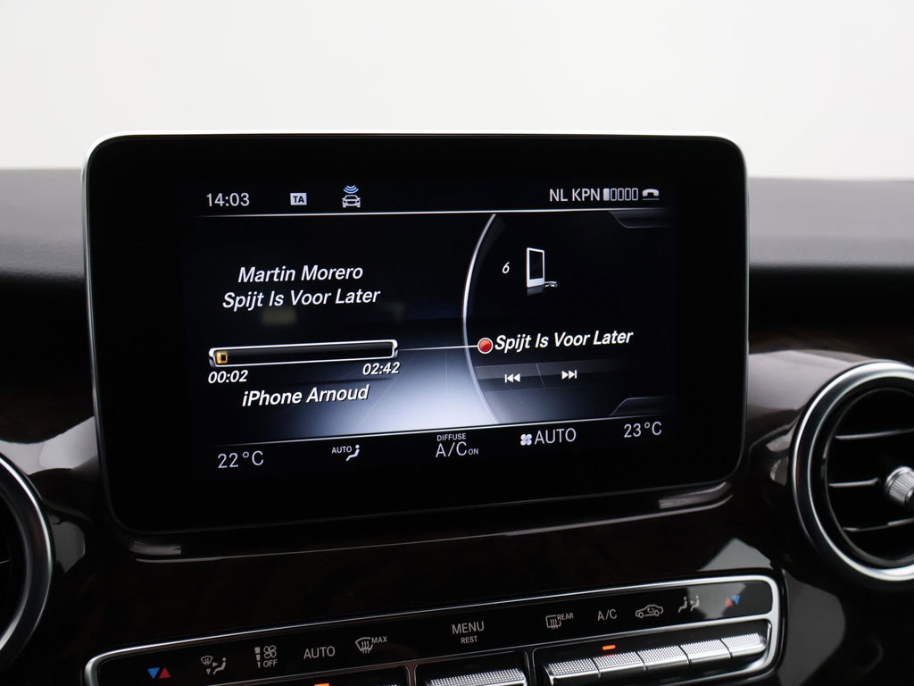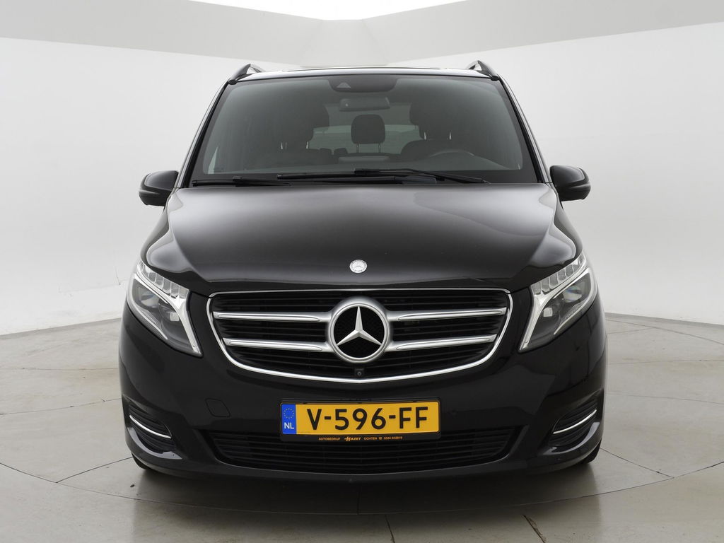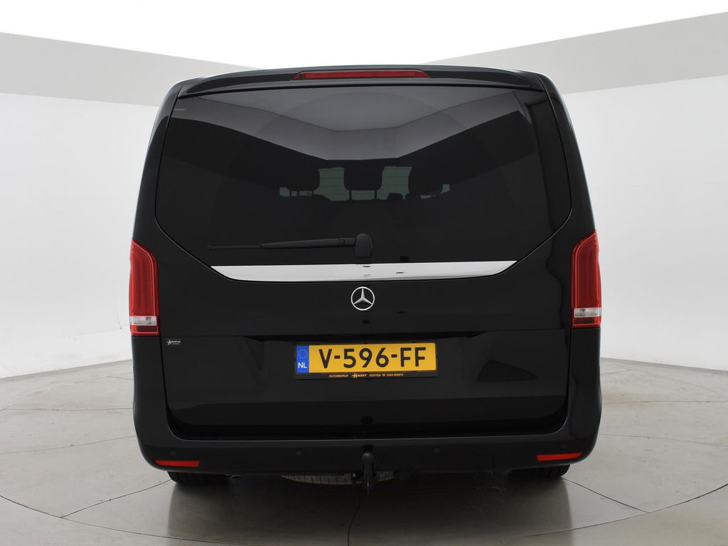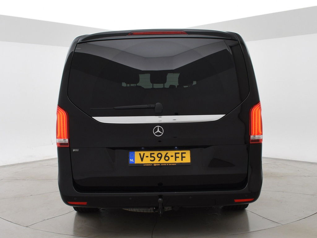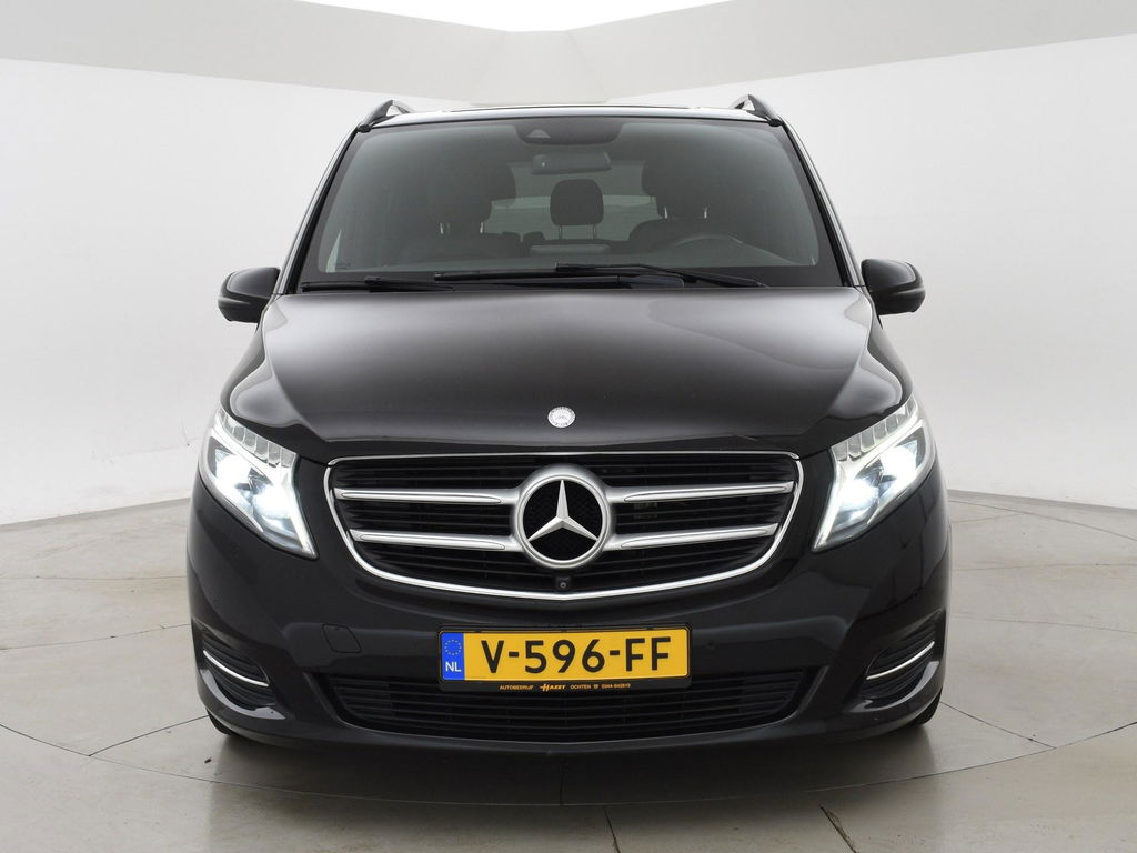 V-klasse 250d 190 PK Automaat dubbel cabine met 5 zitplaatsen, Extra Lang uitvoering L3, Origineel Nederlandse auto, Zwart met zwart leder interieur, Avantgarde Edition, 2 elektrische schuifdeuren + elektrische achterklep, 360 graden surround view camerasysteem, Burmester Premium sound, Full LED koplampen, LED achterlichten, 18 inch lichtmetalen velgen, Sfeerverlichting interieur met verschillende kleuren, Navigatie, Dodehoek assistentie, Lijnassistentie, Verkeersbordenherkenning, Armleuningen achterin, Dakrailing, Vloerbedekking, Zwarte hemelbekleding, 3 zone climate control met display en bediening achterin, Bluetooth met audiostreaming, Trekhaak met cameramodus voor de trekhaak,
