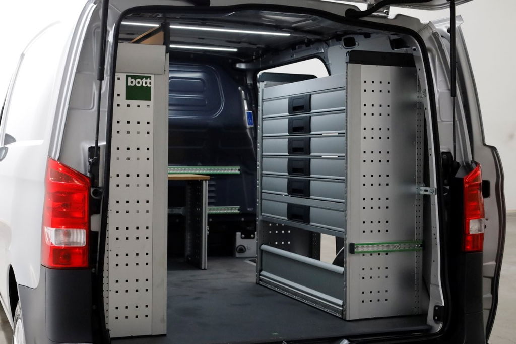 Deze 136pk sterke Vito 114 CDI is van 01-2022! Compacte en wendbare L1H1, direct inzetbaar vanwege reeds gemonteerde inrichting.