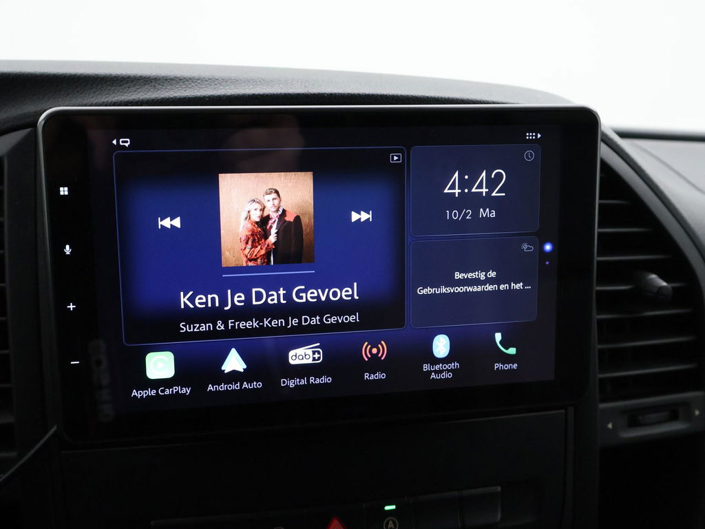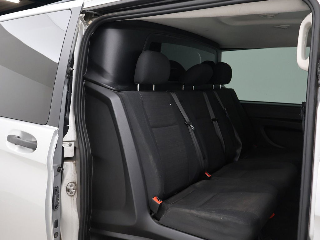 EU verantwoordelijke: Mercedes-Benz Nederland B.V. Postbus 2088 3500 GB Utrecht, NL 030-2471911 www.mercedes-benz.nl info@mercedes-benz.nlVito 119 CDI BlueTec 190 PK automaat L2H1 dubbel cabine met 6 zitplaatsen, maar de bijrijdersbank is er later ingebouwd is van kunstleder, terwijl de rest van het interieur van stof is. Er staan ook maar 5 zitplaatsen op kenteken. Luxe achterbank met armleuningen en 3 LED spotjes in de hemel, Zilvergrijs metallic, Draadloze Apple Carplay / Android Auto appstreaming Google Maps, Flitsmeister, Whatsapp, Spotify etc, Full LED Koplampen LED Intelligent Light, LED achterlichten, Climate control met links en rechts gescheiden temperatuur, Achteruitrijcamera, DAB+ Digitale radio, Lichtmetalen velgen, RVS Sidebars, Trekhaak, Cruise control, Privacy glass, Bluetooth met audiostreaming, Prijs is exclusief BTW.