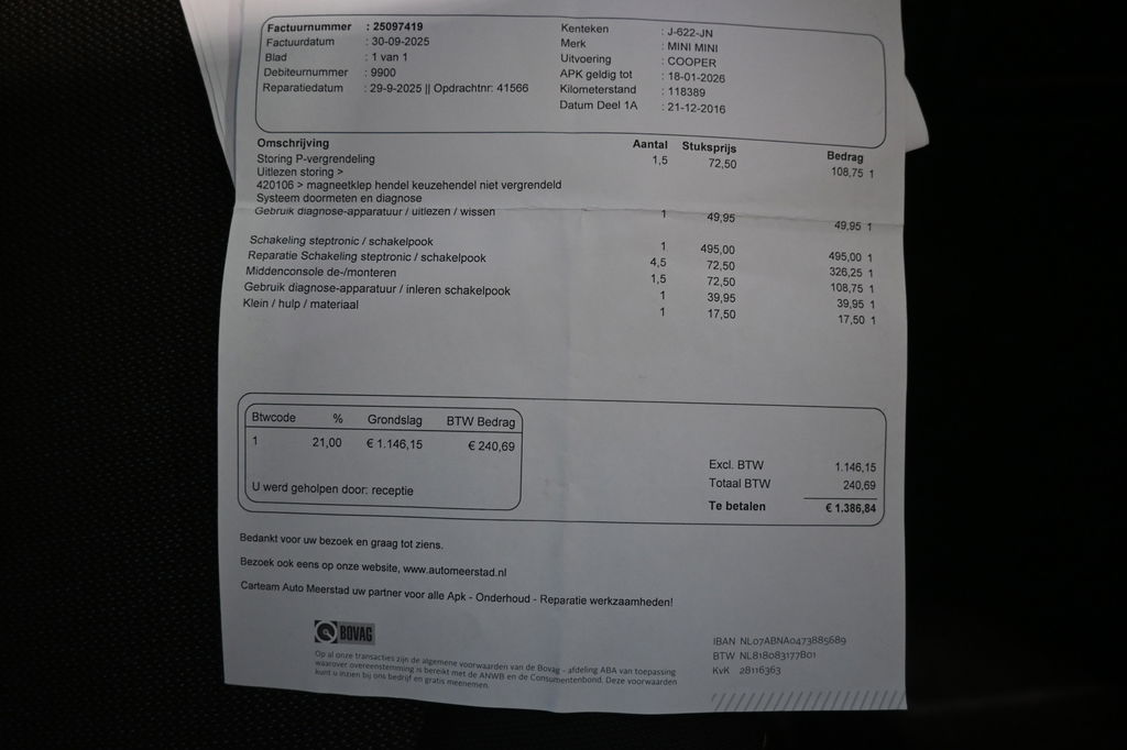 APK: Nieuwe APK bij aflevering