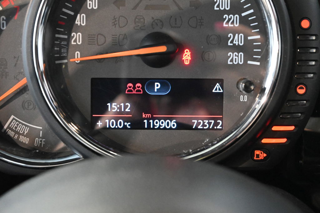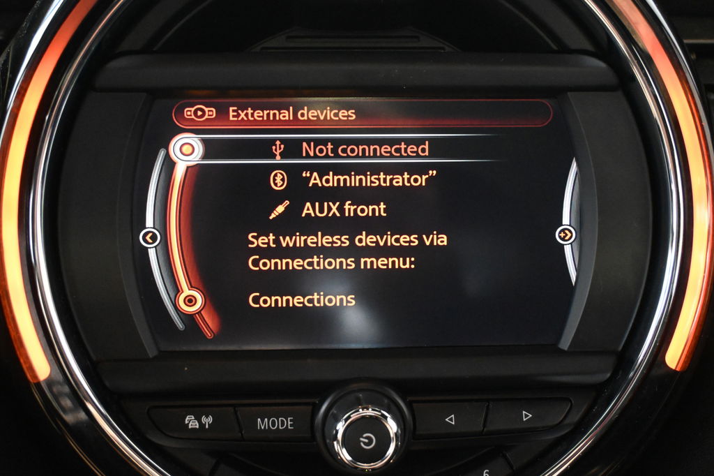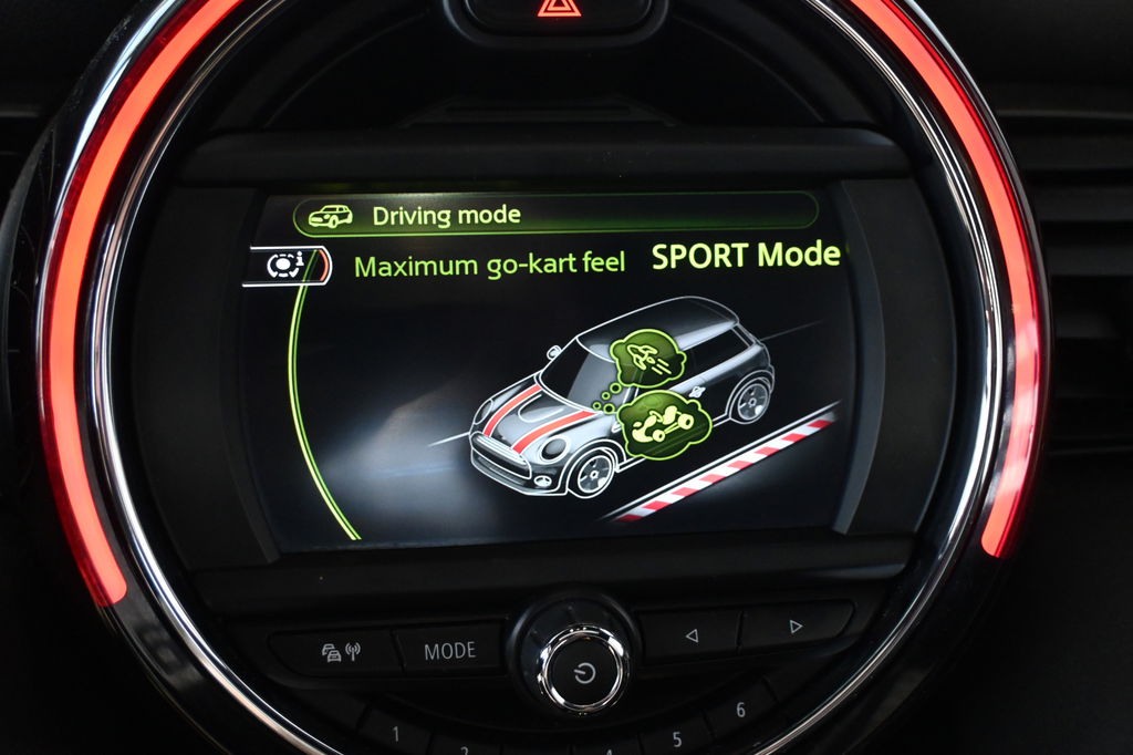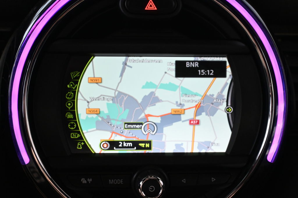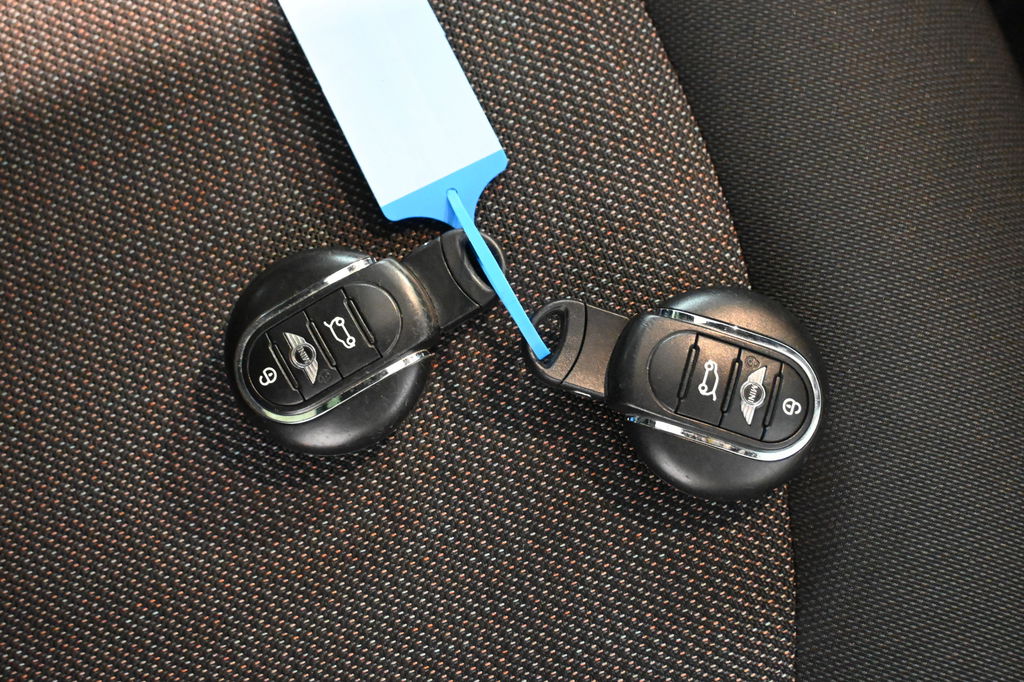 Een belangrijke veiligheidsvoorziening is de bediening van het audio-installatiesysteem en het navigatiesysteem via knoppen op het stuur. Automatische airconditioning regelt volautomatisch de temperatuur. U kiest de gewenste temperatuur en het systeem doet de rest. Kom-maar-kom-maar...ho! Zo eenvoudig is het voordeel van parkeersensoren. En zo behulpzaam! Achter het stuur van deze MINI bent u niet alleen. De auto kijkt als het ware met u mee tijdens de rit. De regensensor schakelt de ruitenwissers in als het nodig is en de automatisch inschakelbare verlichting doet de lichten voor u aan. De cruise control betekent gemak, comfort en zuinig rijden. Extra opties op deze auto zijn: keyless entry, centrale deurvergrendeling met afstandsbediening en boordcomputer.