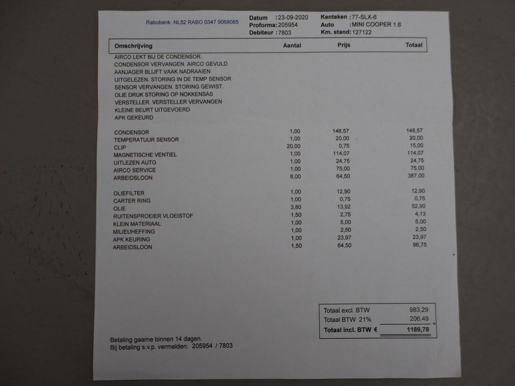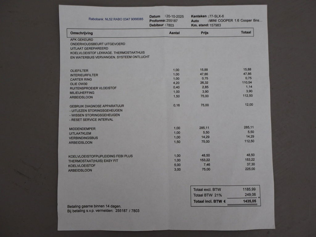 EU verantwoordelijke: BMW Group Nederland Postbus 5805 2280 HV Rijswijk, NL 08000992234 www.mini.nl DSA-MINI@MINI.nlOrigineel Nederlandse Cooper 1.6 122 PK met 6 versnellingen, Goed onderhouden, in 10-2025 nog voor 1435 euro onderhoud gehad, Pepper White met zwart dak en zwarte spiegels, Zwarte striping en 17 inch zwarte velgen, Zwart half leder sportinterieur, Cruise control, Navigatie Portable MINI, Airco, Leder stuurwiel met audiobediening.