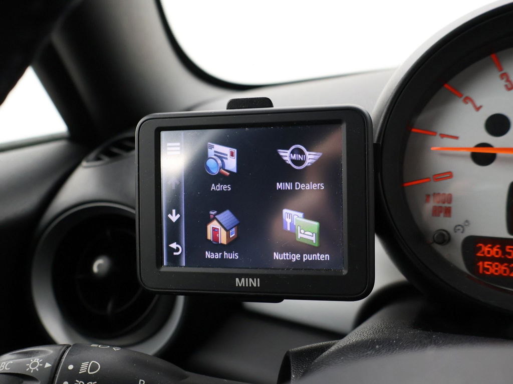 | Uitvoering: | Mini 1.6 122 PK 6-BAK + 17 INCH | CRUISE CONTROL | ZWART DAK | SPORTSTOELEN | STRIPING |