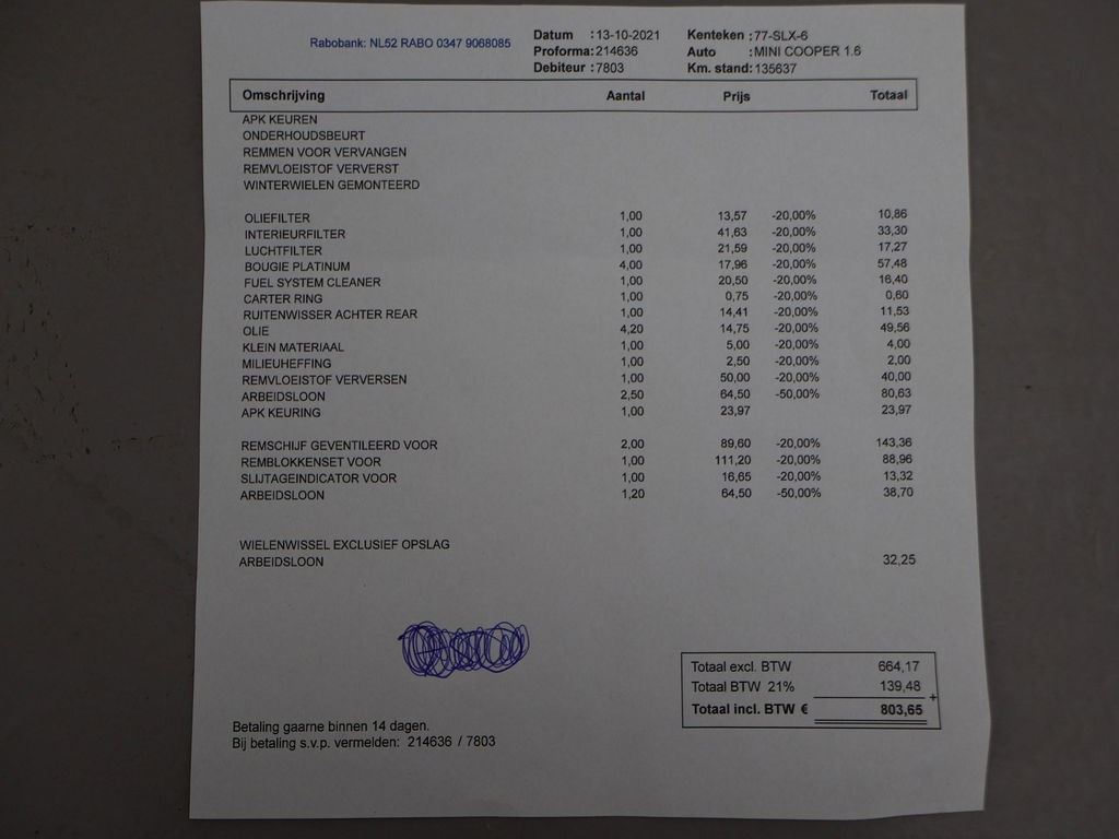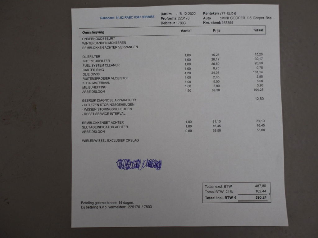 Olie servicebeurt incl. filter