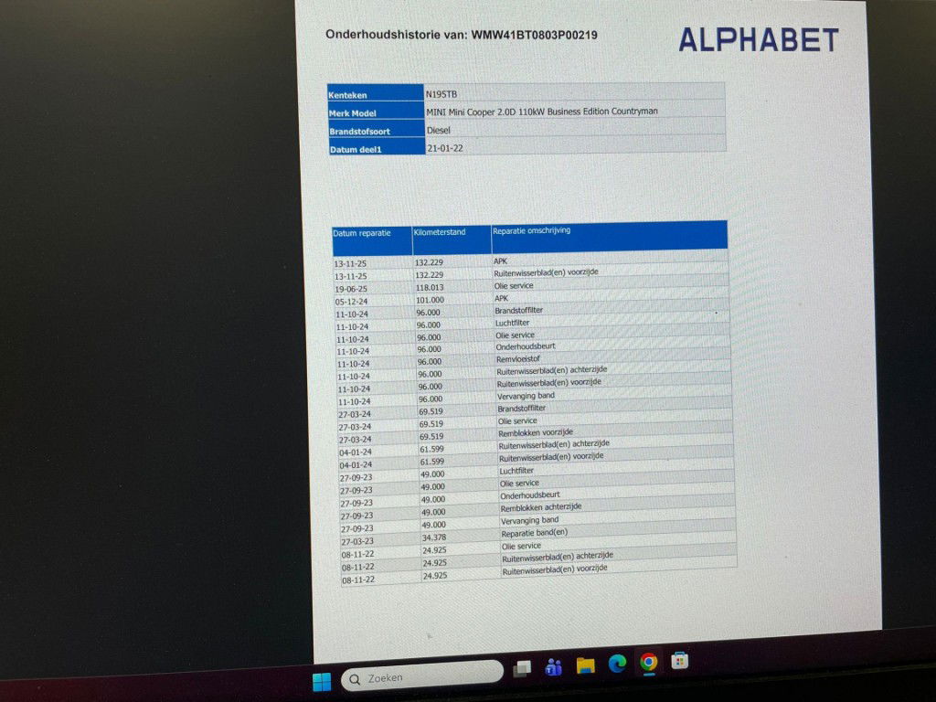 - Onderhoudsboekje aanwezig