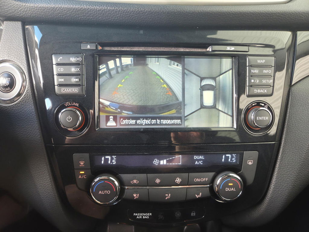 Strak inparkeren wordt een fluitje van een cent door de achteruitrijcamera. Bij de luxe van deze auto hoort ook automatische airconditioning. De cruise control geeft elke flitser het nakijken. Geen capriolen meer als u met armen vol de auto moet openen. De keyless entry heeft u al herkend en ontgrendelt de Nissan Qashqai automatisch. Extra opties op deze auto zijn: navigatiesysteem, DAB ontvangst, automatisch dimmende binnenspiegel en lederen stuur en versnellingspook.