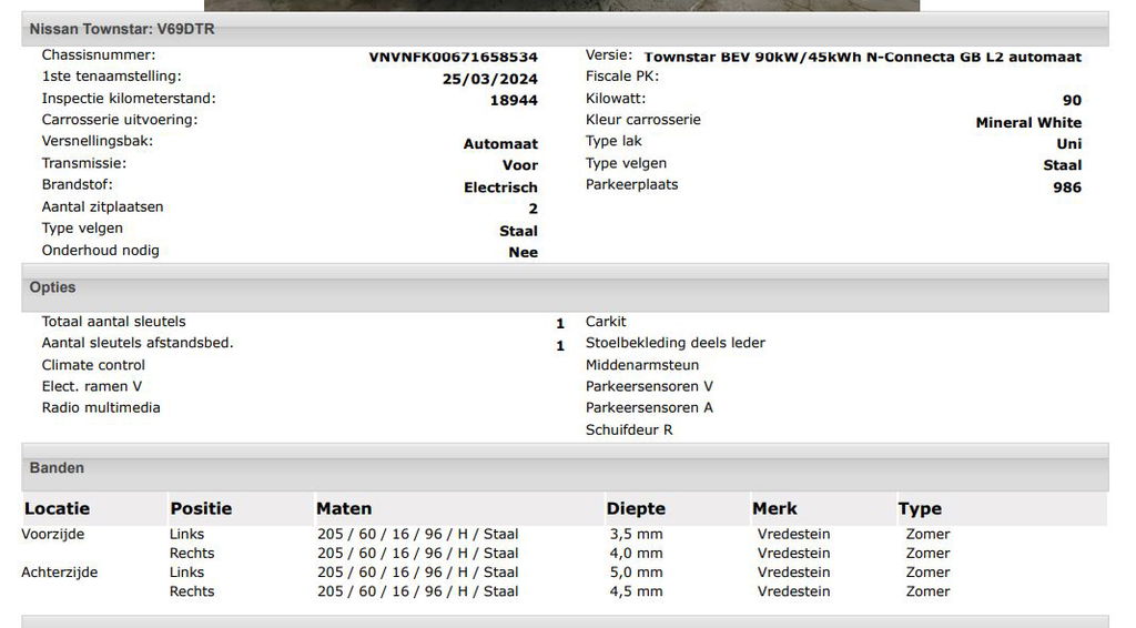 | Uitvoering: | N-Connecta L2 45 kWh 100% EV. / Pdc.+Camera / Airco-ecc./ Radio-multimedia / Schuifdeur rechts / WLTP-actieradius: ca. 285 km |