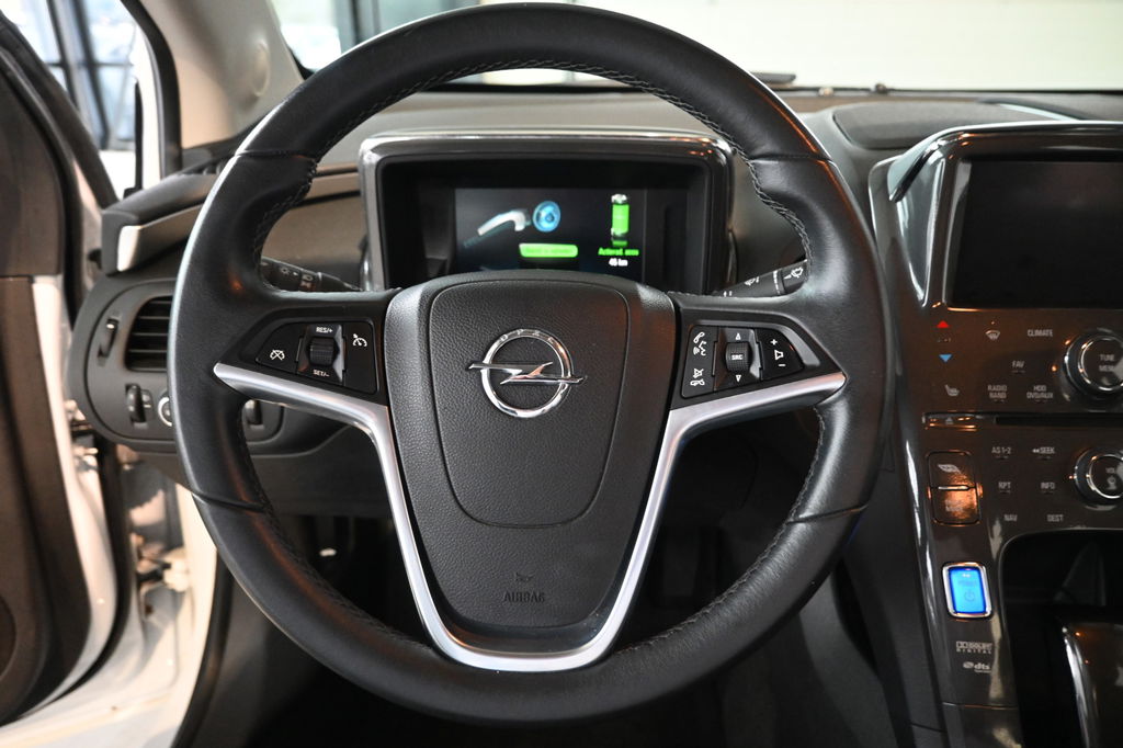 De achteruitrijcamera laat duidelijk zien hoeveel ruimte u nog heeft bij het inparkeren. In deze auto beschikt u natuurlijk over een navigatiesysteem. Het audiosysteem biedt glasheldere geluidskwaliteit, u bedient dit veilig via het stuurwiel. Het drukke verkeer eist onderweg al uw aandacht op. Daarom is het goed dat deze Opel is voorzien van diverse systemen die u assisteren tijdens de rit. Een automatisch inschakelbare verlichting neemt het waar als het donker wordt of gaat schemeren, en schakelt dan automatisch de verlichting in. Op dezelfde manier "ziet" de regensensor de eerste spatjes regen en schakelt dan de ruitenwissers in, en als het harder gaat regenen zet hij de ruitenwissers ook in een snellere stand. De aanwezige cruise control scheelt lekker in brandstofkosten. En ook bij de flitspaal. Zoals u weet, liggen de autosleutels altijd onderin de boodschappentas die u sjouwt. Geen probleem bij deze Opel Ampera. De token in uw jaszak wordt van dichtbij gesignaleerd door de keyless entry en alle sloten gaan automatisch open. Ook airconditioning, automatisch dimmende binnenspiegel, centrale deurvergrendeling met afstandsbediening, boordcomputer en verstelbaar stuur zijn aan boord.