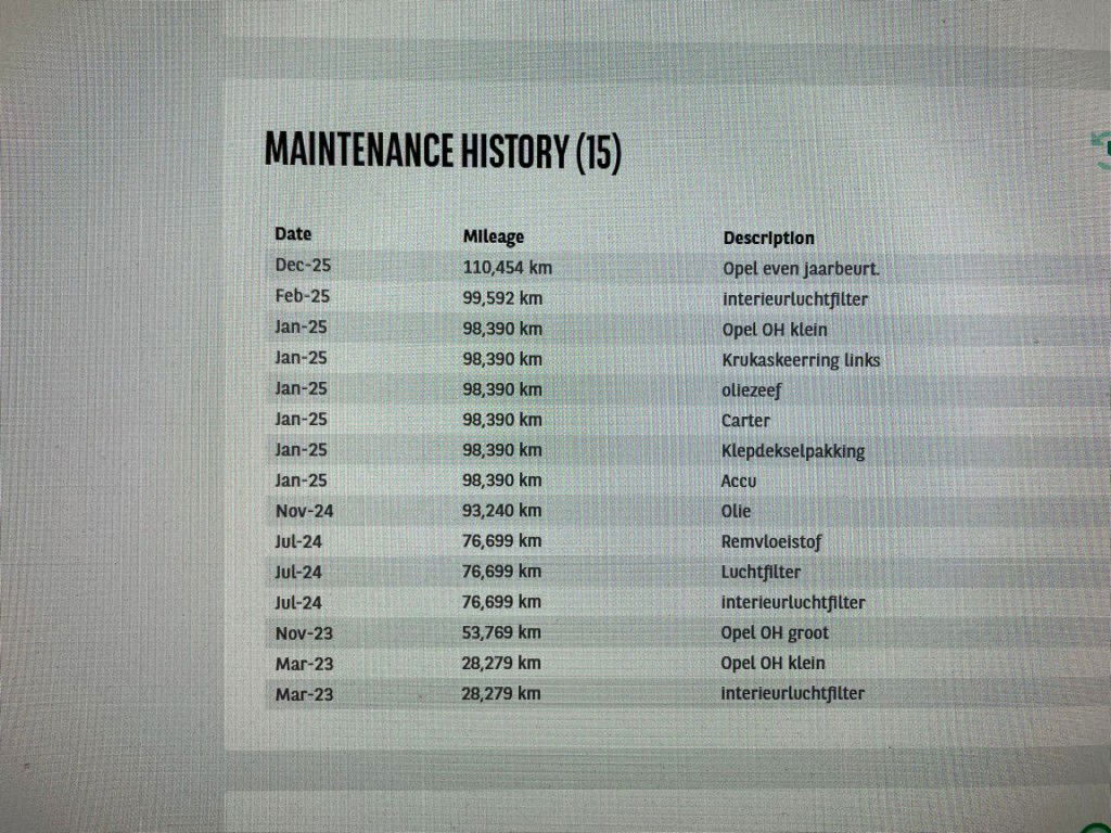 - Onderhoudsboekje aanwezig