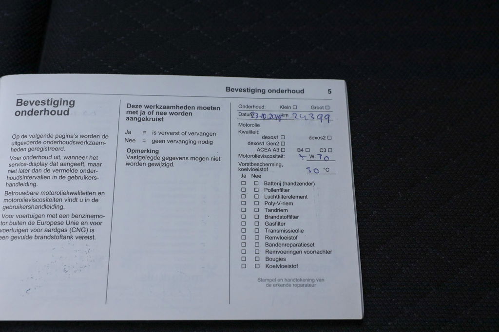 - Onderhoudsboekje (fysiek)