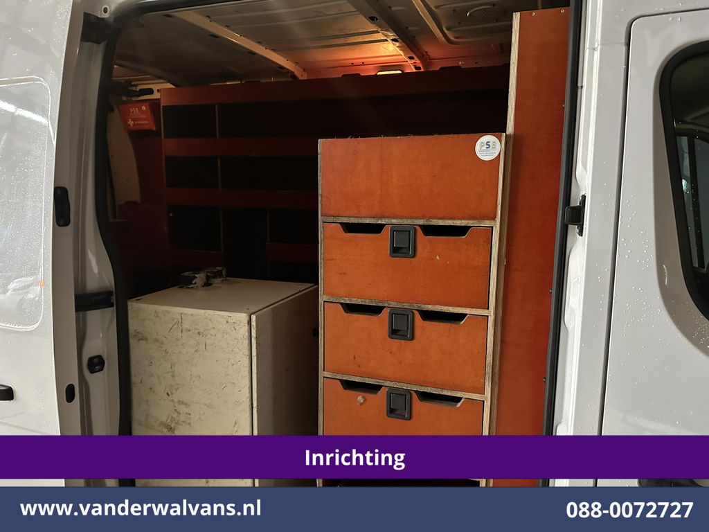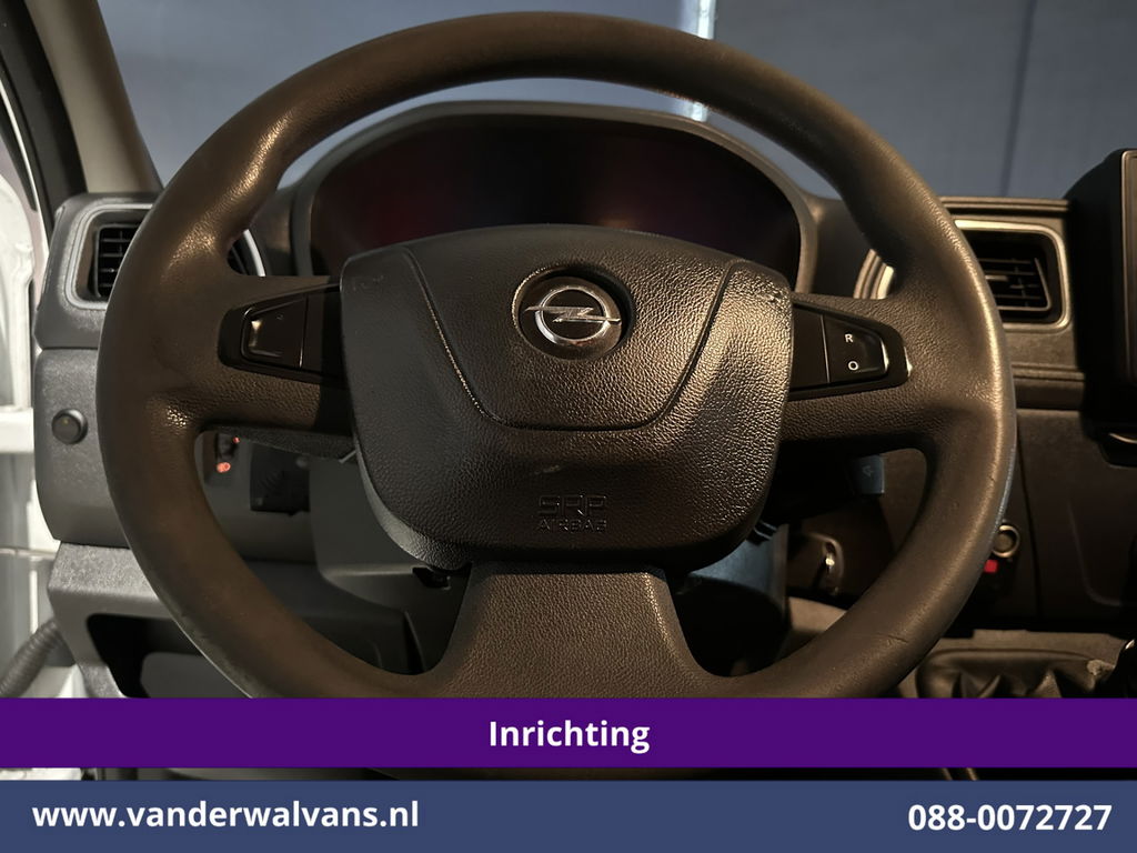150pk sterke Opel Movano L2H2 Euro6 met inrichting en camera. Geheel dealer onderhouden en voorzien van airconditioning, imperiaal, 2500kg trekhaak, LED, cruisecontrol, parkeersensoren en bluetooth telefoonvoorbereiding.