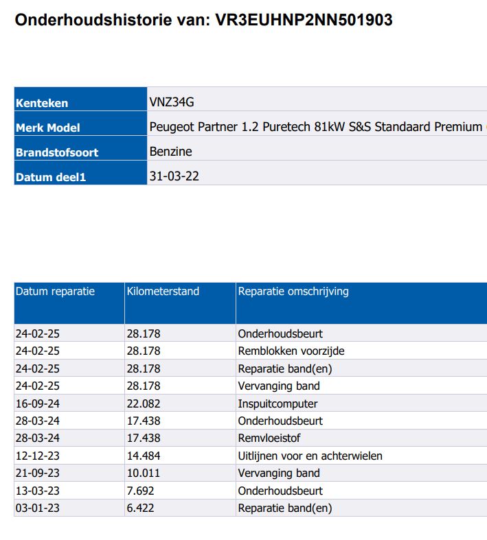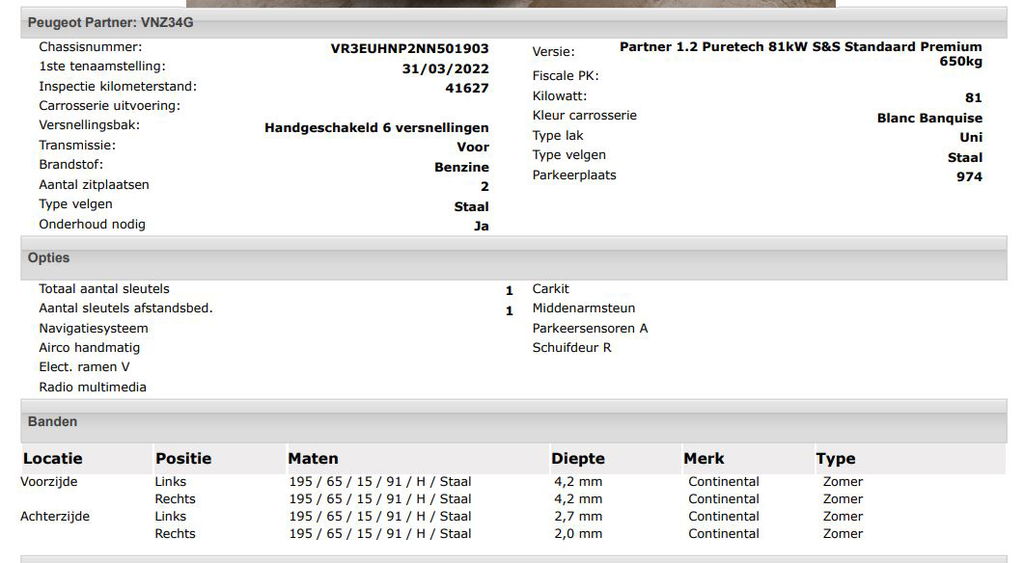 | Merk / type: | Peugeot Partner |