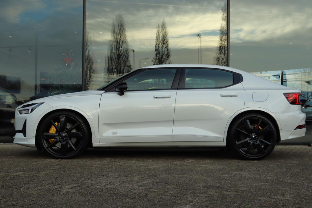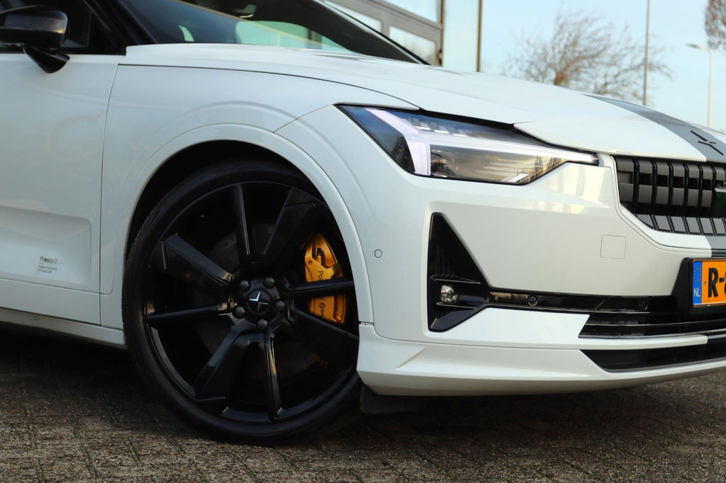 Origineel Nederlands geleverde Polestar 2 BST (BEAST) Edition, 1 van de 270 wereldwijd! Te herkennen aan het Performance Pack met de: Zwarte racing stripe, gele Brembo remklauwen met 21'' Gloss black velgen, 25mm verlaagd door de instelbare Öhlins dempers speciale MicroSuede bekleding, en komen standaard met het Pilot- en/of Plus-pakket, waardoor ze een nog intensere, circuit-waardige rijervaring bieden met behoud van luxe en technologie. Long Range Dual Motor met gemiddeld genomen 470km actieradius.