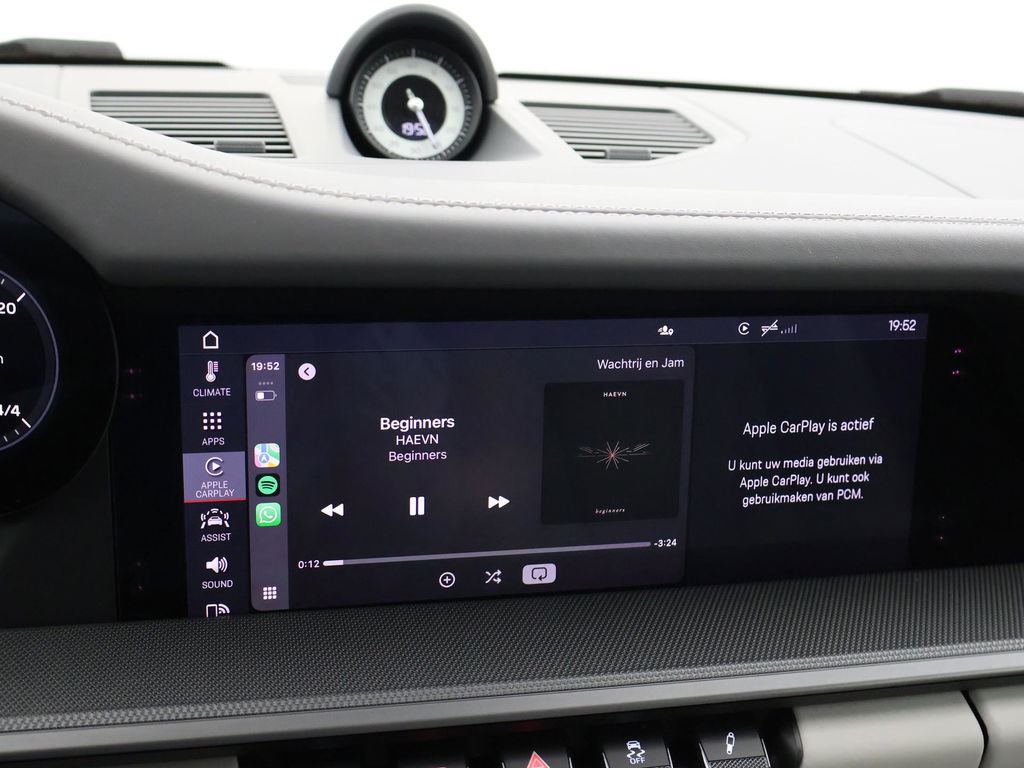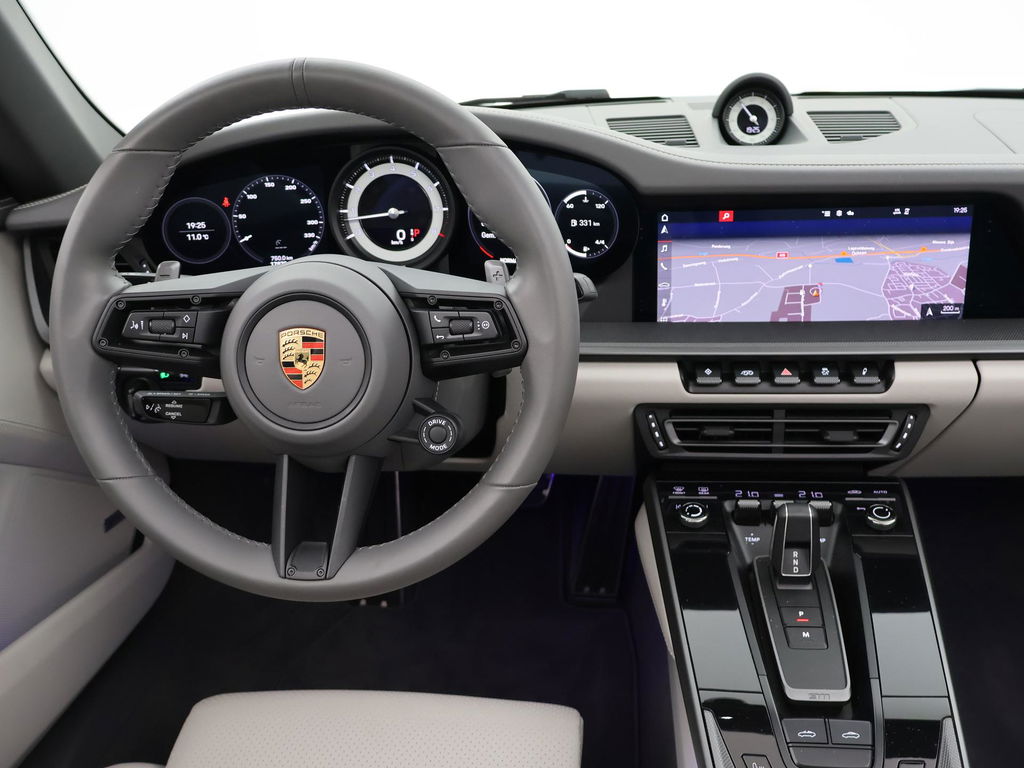 Origineel Nederlandse 992 911 Targa 3.0 4S 450 PK PDK automaat in het Carrarawit metallic met Leisteen Grijs met Krijt leder interieur, Vierwielaandrijving, Slechts 17.979 km gereden, Sportuitlaat origineel vanaf fabriek, 360 graden camerasysteem, SportDesign bumpers met afwerking in hoogglans zwart, Bose premium sound, Sport Chronopakket, Lederen interieurdelen, Sfeerverlichting interieur, 20 inch lichtmetalen velgen breedset (305 achter, 245 voor), Verwarmd stuurwiel, Rode remklauwen, Donker glas achter, Full LED koplampen, Draadloze Apple Carplay / Android Auto appstreaming Google Maps, Flitsmeister, Whatsapp etc, DAB+ Digitale radio, PASM adaptief onderstel, Cruise control, Deels digitale cockpit met navigatie kaartweergave, Navigatie breedbeeld touch-screen, Stoelverwarming, Elektrische stoelverstelling met geheugen, Parkeersensoren, Climate control, Elektrische spoiler, Porsche projectie op de straat, Zwart/grijs logo voor.