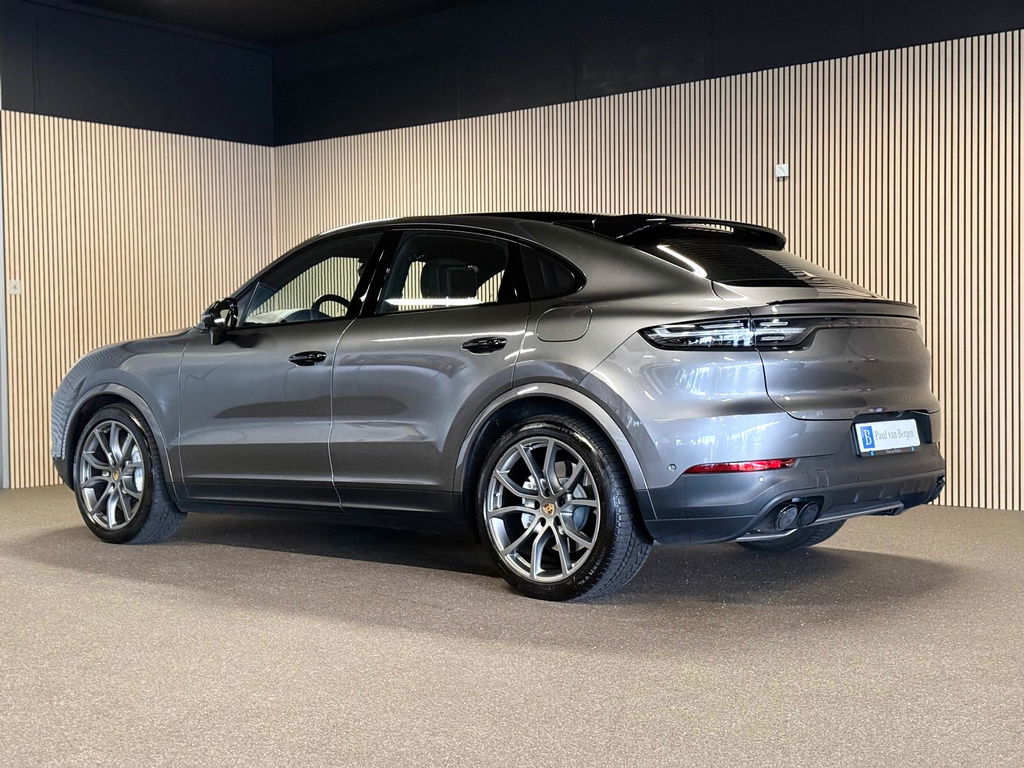 De veelzijdigheid straalt van deze Porsche Cayenne Coupé af, met zijn vijf deuren en vijf zitplaatsen. Hij is van het bouwjaar 2021, is dealeronderhouden en op de teller staat 93622 kilometer. Als u een laag brandstofverbruik en goede prestaties belangrijk vindt, dan bent u uitstekend bediend met de zescilinder benzinemotor. Glibberen of glijden is er met deze vierwielaandrijving niet bij. Op deze 4WD kan je onder alle omstandigheden rekenen. Terwijl u de bagage inlaadt via de elektrisch bedienbare achterklep, nemen uw passagiers al plaats in het lederen interieur. Mooi! Deze Porsche Cayenne Coupé heeft niet alleen verwarmbare voorstoelen, maar ze zijn ook nog eens voorzien van massagefunctie. U past de stoelen moeiteloos aan, ze zijn elektrisch in te stellen en hebben bovendien een geheugen. Het panoramadak zorgt voor zicht, licht en een enorm ruimtelijk gevoel. Stramme vingers krijgen 's winters een VIP-behandeling van het verwarmd stuurwiel. Ook 21 inch lichtmetalen velgen, LED koplampen, adaptief dempingsysteem, warmtewerend glas, trailer assistent en dakspoiler horen tot de voorzieningen op deze auto.
