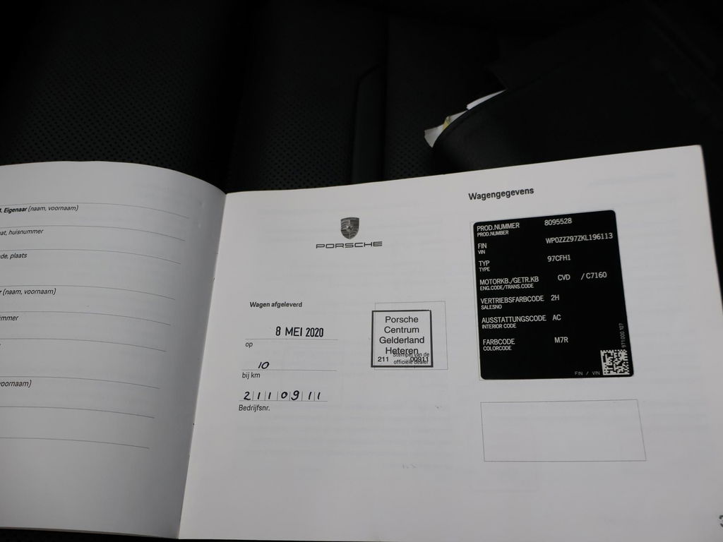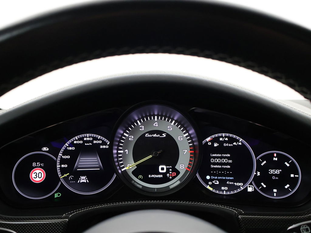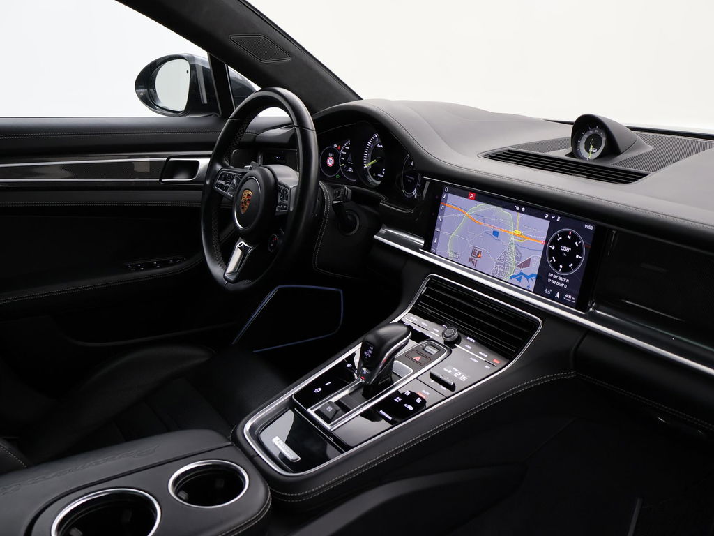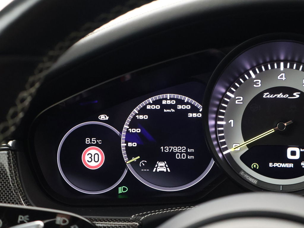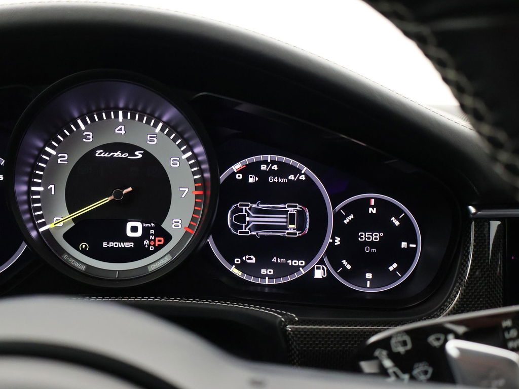 EU verantwoordelijke: Porsche AG Porscheplatz 1 D-70435 Stuttgart, NL (+49)-0711-911-0 https://www.porsche.com/international/ info@porsche.deOrigineel Nederlandse auto door Porsche Centrum Gelderland geleverd, RDW nieuwprijs 259.939 euro, Sport Turismo, BTW verrekenbaar, Vulkaangrijs metallic, 4.0 V8 Turbo S E-Hybrid 680 PK origineel vanaf fabriek met vierwielaandrijving, Keramische remmen Porsche Ceramic Composite Brake, Zwart volledig leder interieur: sportstoelen met 18-voudige verstelling, Alle dashboard delen van leder niet alleen het dashboard maar zelfs de stoelbehuizing, zijkant van het dashboard en verder alle delen die leder kunnen. 5-persoons uitvoering, Burmester High End audio, Stoelventilatie, Stoelverwarming voor + achter, Sportuitlaat origineel vanaf fabriek met regelbare kleppen, Luchtvering, Adaptief onderstel met regelbare schokdempers, Achterasbesturing, Panorama schuif/kanteldak, 360 graden camerasysteem, 21 inch lichtmetalen velgen, Matrix LED koplampen, 4-zone climate control, Navigatie breedbeeld + Apple Carplay en Android Auto, Head-up display, HomeLink garagedeur opener, DAB+ Digitale radio, Elektrische achterklep, Comfort access keyless, Zwarte alcantara hemelkleding, Extra isolerend dubbel glas, Verkeersbordenherkenning, Lijnassistentie, Adaptive cruise control, Dodehoek assistentie, File assisatent Privacy glass, Sport Chrono pakket, Gele remklauwen, Verlichte speakerkappen, Sluitbekrachtiging Soft Close portieren, Carbon interieur inleg.