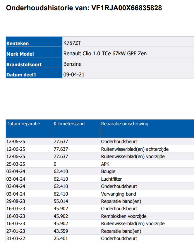 | Onderhoudsboekjes: | Ja, aanwezig |