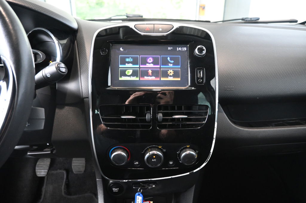 Naast de routeinformatie van het navigatiesysteem kunt u muziek via het audio-installatiesysteem ook online beluisteren via bluetooth. Een constante snelheid is goed voor de ontspanning onderweg, en de cruise control zorgt ervoor. Een handige optie is de keyless entry: de Renault Clio Estate opent automatisch alle sloten zodra u dichtbij bent. Natuurlijk heeft deze auto ook airconditioning. Ook centrale deurvergrendeling met afstandsbediening, bagage afdekhoes, boordcomputer en verstelbaar stuur zijn aan boord.