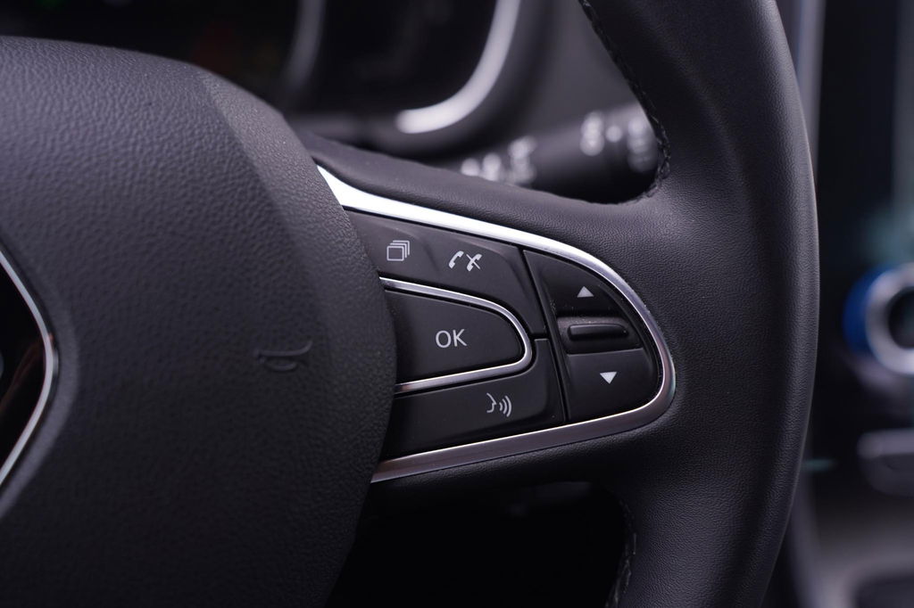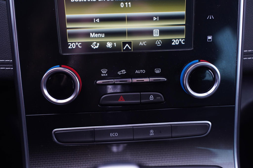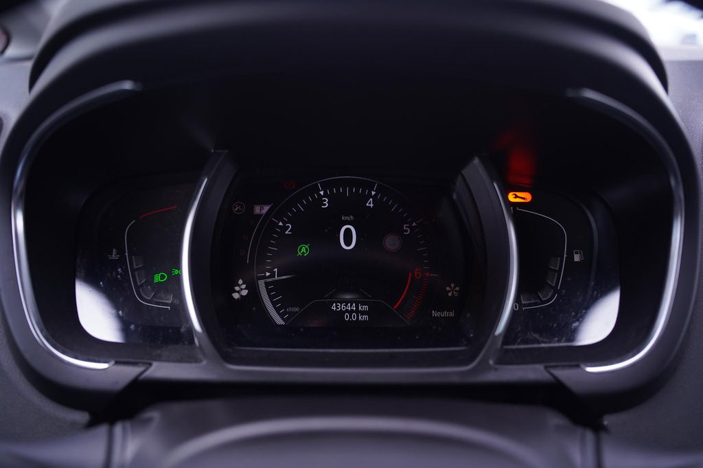 De digitale wereld van mobiliteit verwelkomt u; op het digitale dashboard wordt alles weergegeven om uw rit gemakkelijk en veilig te maken. Kommaar-kommaar-kommaar, aldus de achteruitrijcamera. Iedere centimeter vrije ruimte komt haarscherp in beeld. Schadevrij inparkeren maar! Kies de muziek waarvan u houdt, dankzij de DAB-radio klinkt het altijd geweldig. Intussen bedient u het audiosysteem en het full map navigatiesysteem met de knoppen op het stuur of met uw stem. Electronic climate control verwarmt of koelt het interieur met een druk op de knop. De automatisch inschakelbare verlichting en regensensor zorgen dat onderweg automatisch de verlichting en de ruitenwissers worden ingeschakeld. Daarmee nemen ze u veel werk uit handen. De uitrusting van deze Renault is met cruise control, keyless entry, automatisch dimmende binnenspiegel, centrale deurvergrendeling met afstandsbediening, boordcomputer en verstelbaar stuur behoorlijk compleet.