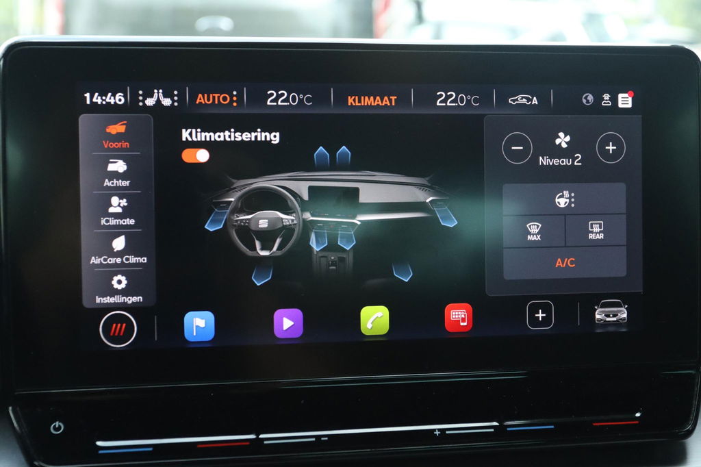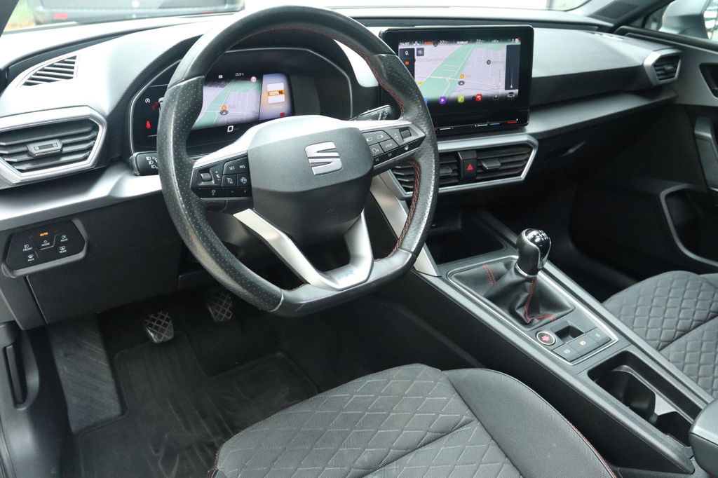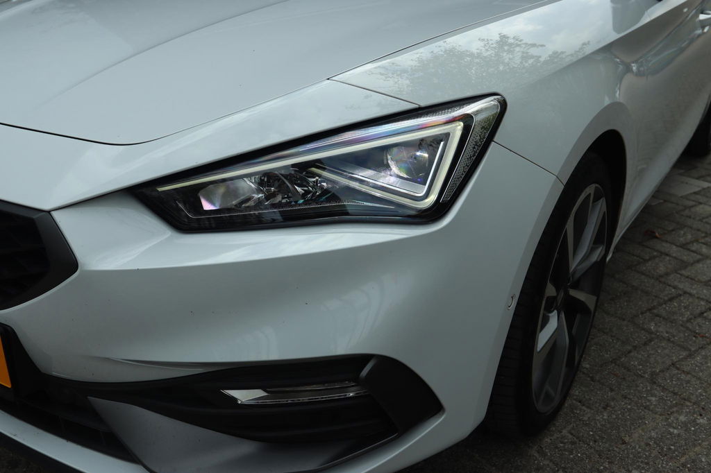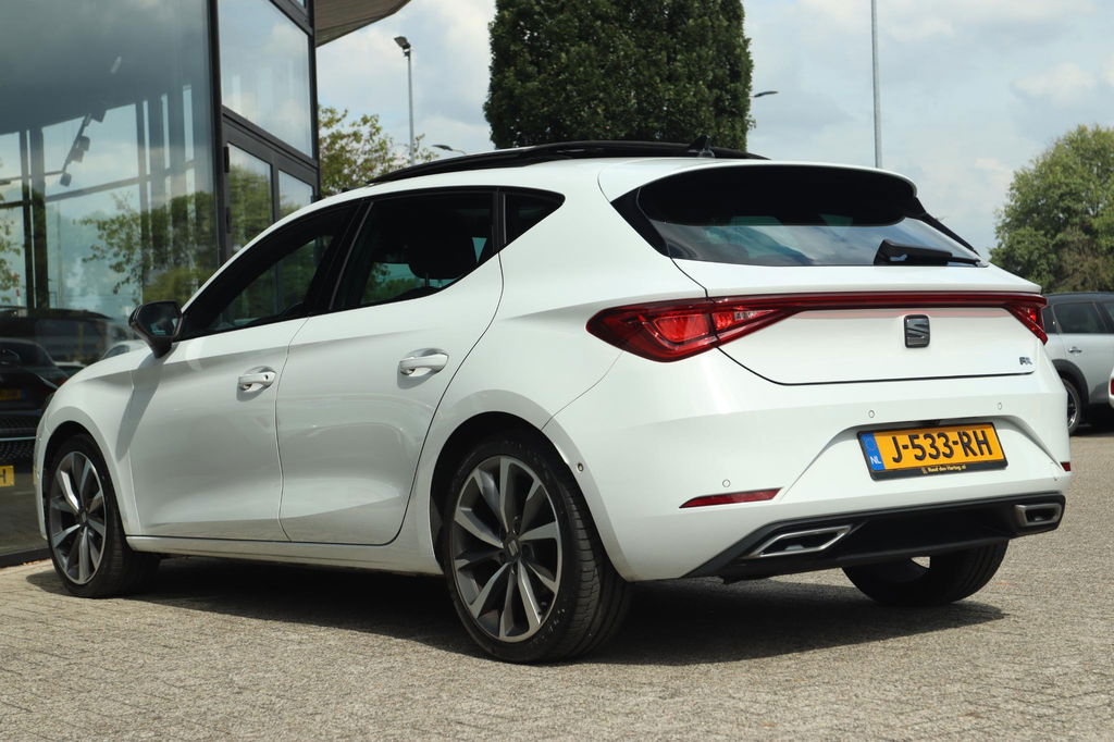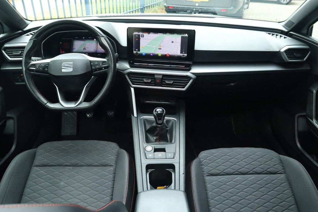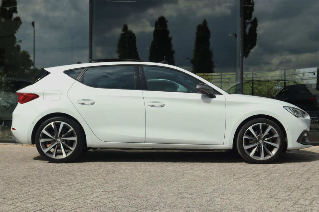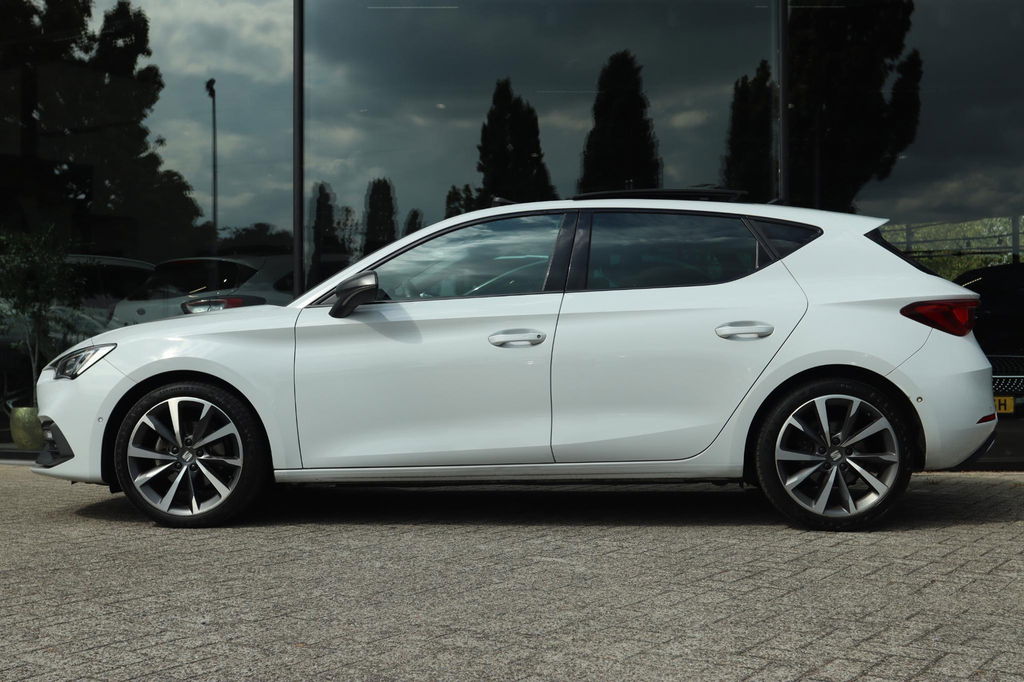 Origineel Nederlands geleverde Seat Leon 1.5 TSI FR Launch Edition, NAP-kilometerverslag aanwezig. Onderhoudshistorie is bij de auto aanwezig. FR-launch edition uitgevoerd in het Nevada White. Deze Seat Leon is o.a. voorzien van: elektrisch panoramadak, virtual cockpit, led koplampen en achterlichten, Achteruitrijcamera, parkeersensoren voor en achter, key-less entry en start, adaptieve cruise control, winterpack (stoel- en stuurverwarming), Apple carplay en Android auto, ambient light en lichtmetalen velgen. Bij deze auto zijn 2 sleutels aanwezig.