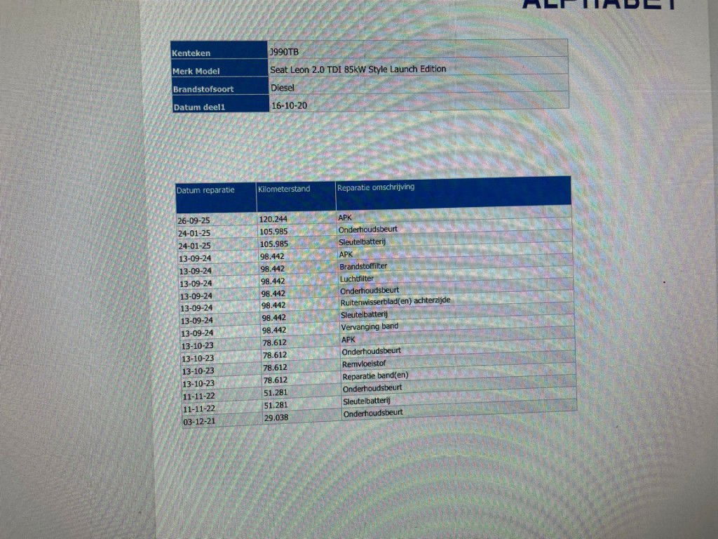 - Onderhoudsboekje aanwezig