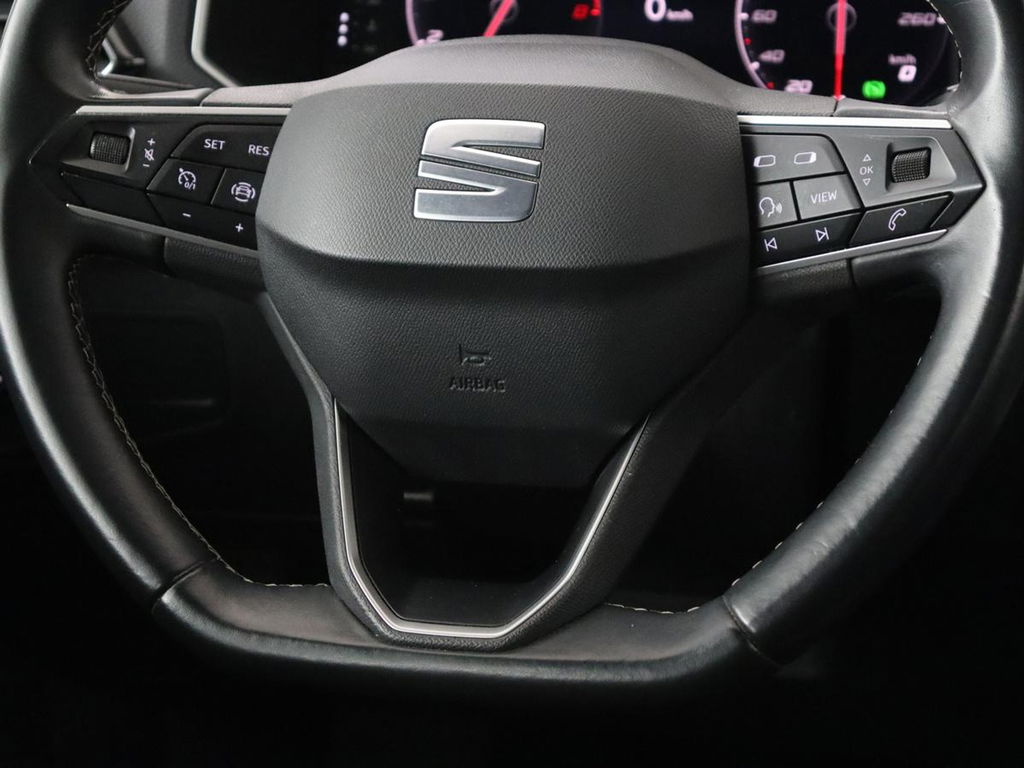 Het personaliseren van uw cockpitinterface is mogelijk met het digitale dashboard in deze auto. Met de achteruitrijcamera ziet u precies wat er achter de auto gebeurt. In deze auto kunt u de belangrijkste functies bedienen met uw stem. Ingericht op Connected Services, voor een nog veiligere en comfortabelere rit. Beste route, verwachte aankomsttijd: uw eigen navigatiesysteem vertelt u alles! De uitrusting van deze SEAT is met automatische airconditioning, draadloos opladen, regensensor, cruise control, automatisch dimmende binnenspiegel en lederen stuur behoorlijk compleet.