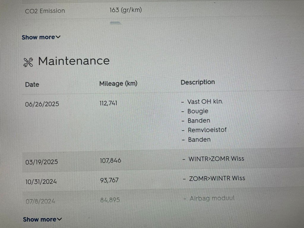 - Onderhoudsboekje aanwezig