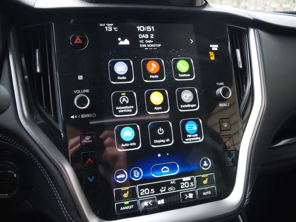Boem is ho? Dat is verleden tijd. De achteruitrijcamera laat precies zien hoeveel ruimte u achter nog heeft! Adaptive cruise control houdt de ingestelde snelheid vast en houdt automatisch afstand tot uw voorligger. De ingebouwde Connected Services vertellen u via de app alles over de status van de auto. Locatie, onderhoudsstatus, brandstofpeil en nog veel meer! Onder alle omstandigheden een volmaakt geluid onderweg: het high performance audiosysteem zorgt ervoor. Deze Subaru Outback is voorzien van sensoren aan de achterzijde om een achteropkomend verkeer waarschuwing te geven als de afstand tussen u en een achterligger te klein is. De Subaru is standaard voorzien van: dashboard met spraakbediening, electronic climate control, schakelpaddles aan het stuur, DAB ontvangst, regensensor en keyless entry.