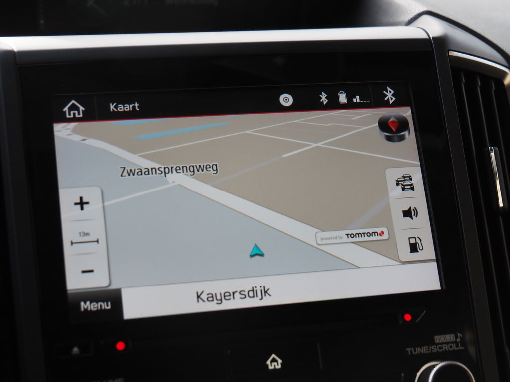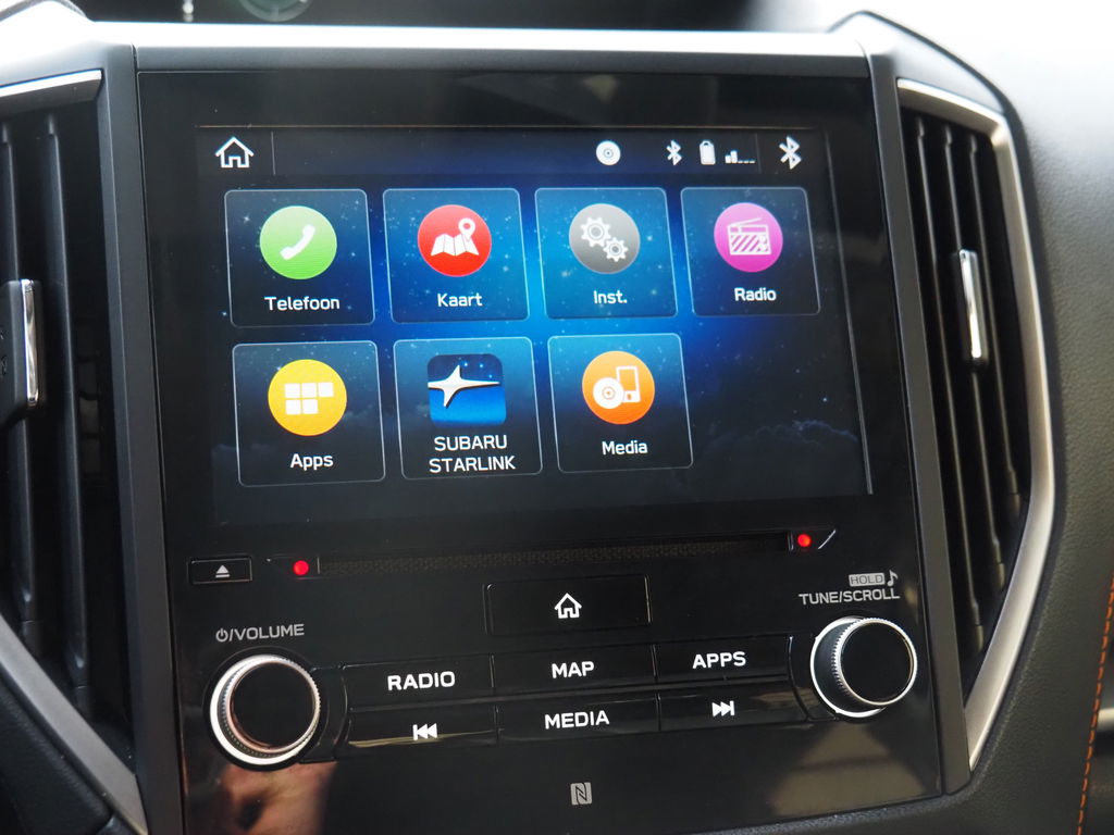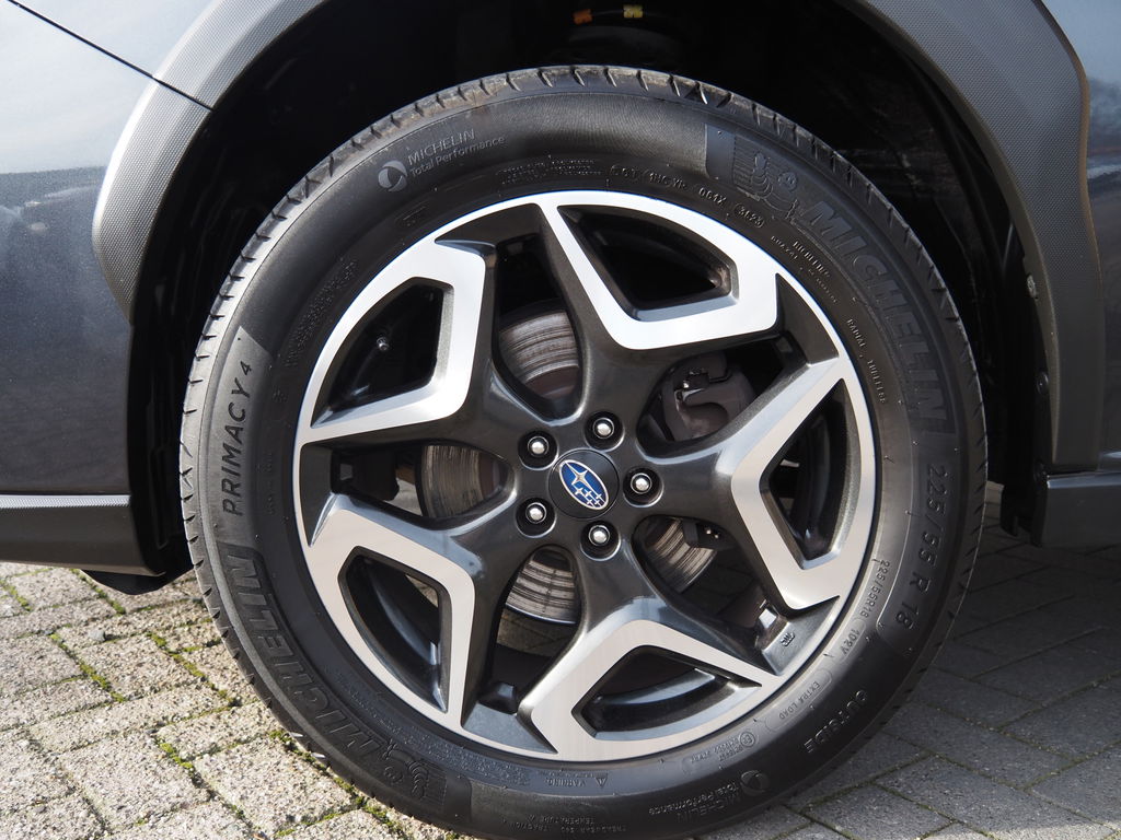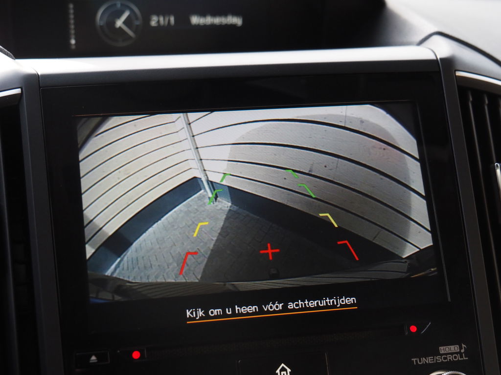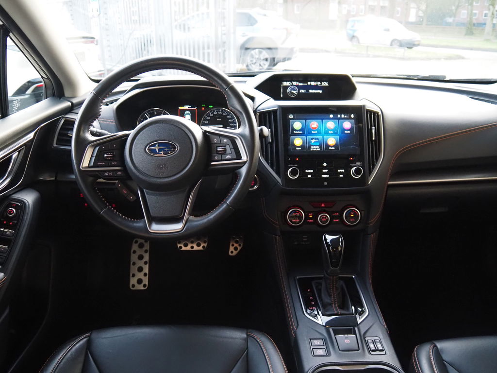 Overzichtelijk en veilig parkeren met de achteruitrijcamera. Overal en altijd. Adaptive cruise control houdt de ingestelde snelheid vast en houdt automatisch afstand tot uw voorligger. Laat u onderweg niet afleiden, de bediening van het audio-installatiesysteem en ook het full map navigatiesysteem gaat met knoppen op het stuur en met spraak. Natuurlijk is de audio-installatie voorzien van DAB-ontvangst. Bij het wisselen van rijbaan kan een dode hoek ontstaan waardoor achterliggers te dichtbij kunnen komen. De achteropkomend verkeer waarschuwing geeft in dat geval automatisch een signaal. Of het buiten nu warm is of koud, dankzij electronic climate control is het binnen altijd behaaglijk. Met schakelpaddles aan het stuur, regensensor, keyless entry, automatisch dimmende binnenspiegel en lederen versnellingspook is deze Subaru helemaal compleet.
