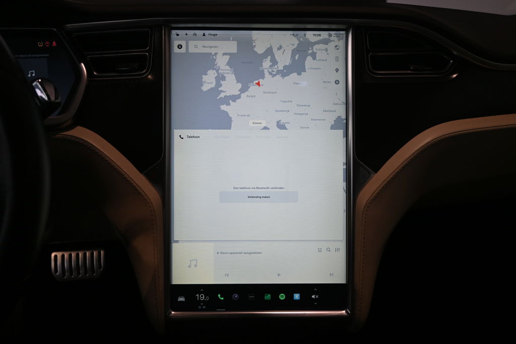 U rijdt snel, zuinig en zeker naar uw bestemming met het full map navigatiesysteem. Het spreekt voor zich dat een auto als deze ook van automatische airconditioning is voorzien. Zelfs een kleine aanrijding kan flinke kosten veroorzaken. Gelukkig laat de achteruitrijcamera precies zien wat er zich achter de auto bevindt en geeft een waarschuwingssignaal. Het drukke verkeer eist onderweg al uw aandacht op. Daarom is het goed dat deze Tesla is voorzien van diverse systemen die u assisteren tijdens de rit. Een automatisch inschakelbare verlichting neemt het waar als het donker wordt of gaat schemeren, en schakelt dan automatisch de verlichting in. Op dezelfde manier "ziet" de regensensor de eerste spatjes regen en schakelt dan de ruitenwissers in, en als het harder gaat regenen zet hij de ruitenwissers ook in een snellere stand. Cruise control houdt automatisch de ingestelde snelheid vast. Zo kunt u zich volledig op het verkeer concentreren.