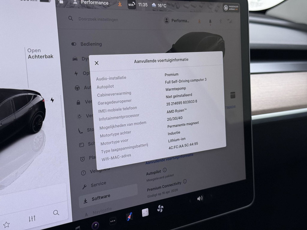 | Uitvoering: | Performance AWD 75 kWh SOH 93% | AUTOPILOT| 21 INCH TURBINE VELGEN| ACHTERBANK VERWARMD| STOEL + STUURVERWARMING |DE HOOGVOLTACCU EN AANDRIJFLIJN GARANTIE TOT 2030 of 192.000KM | |