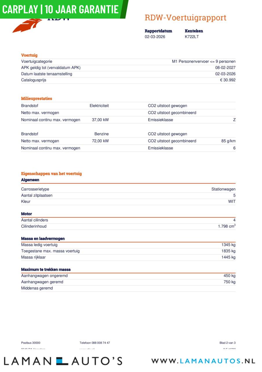 | Emissienorm: | Euro 6 |