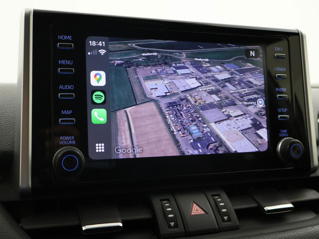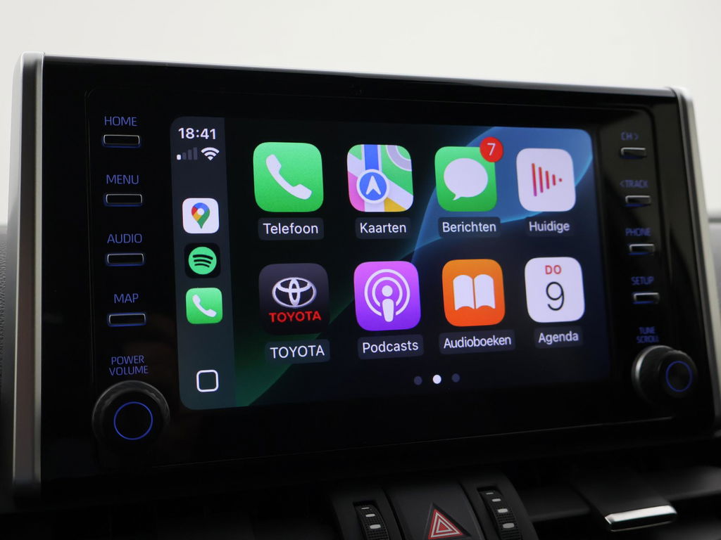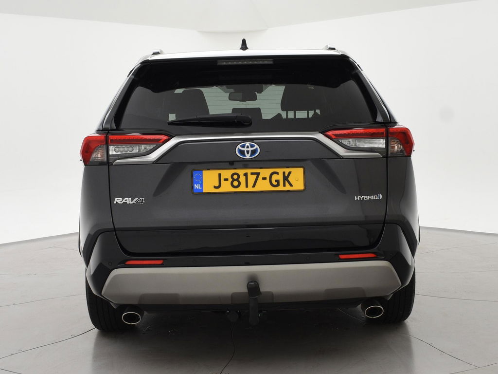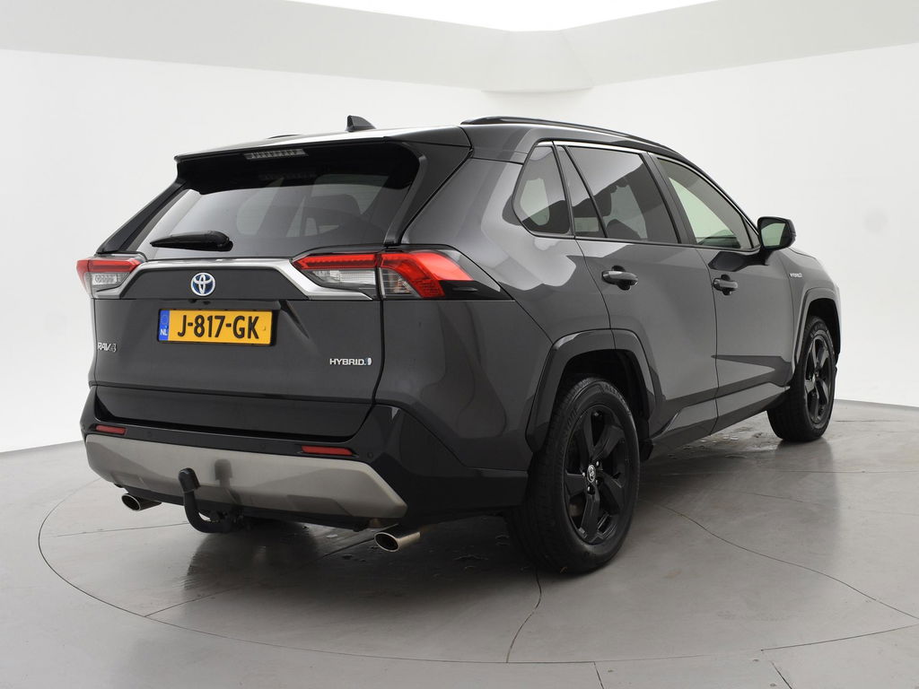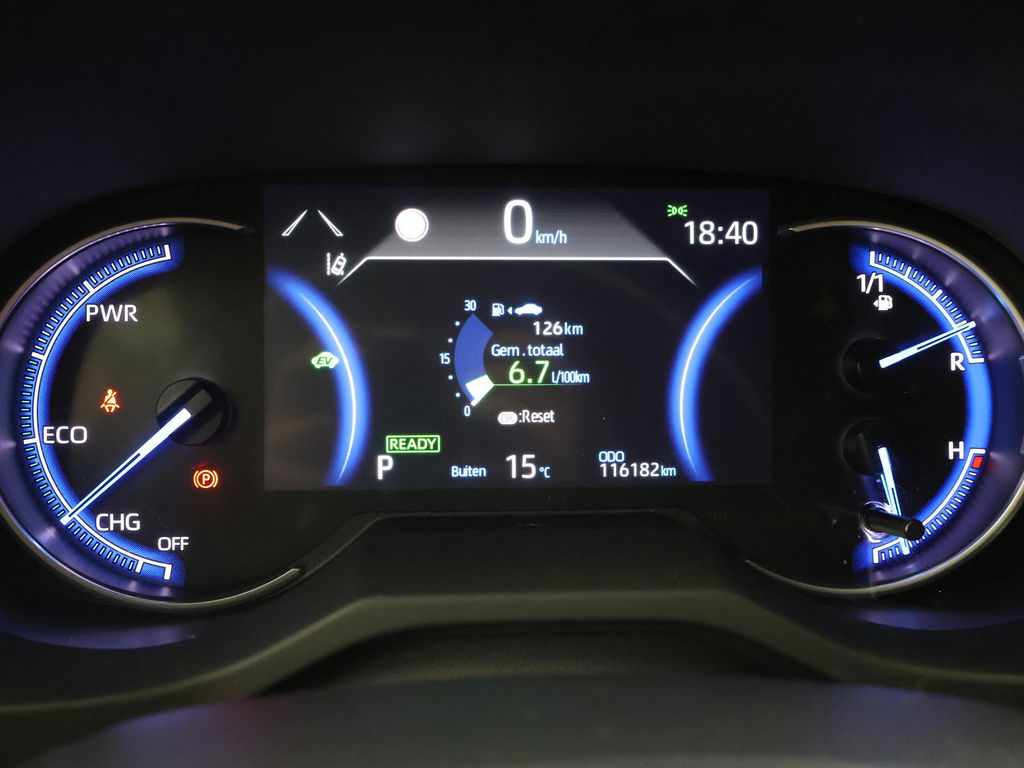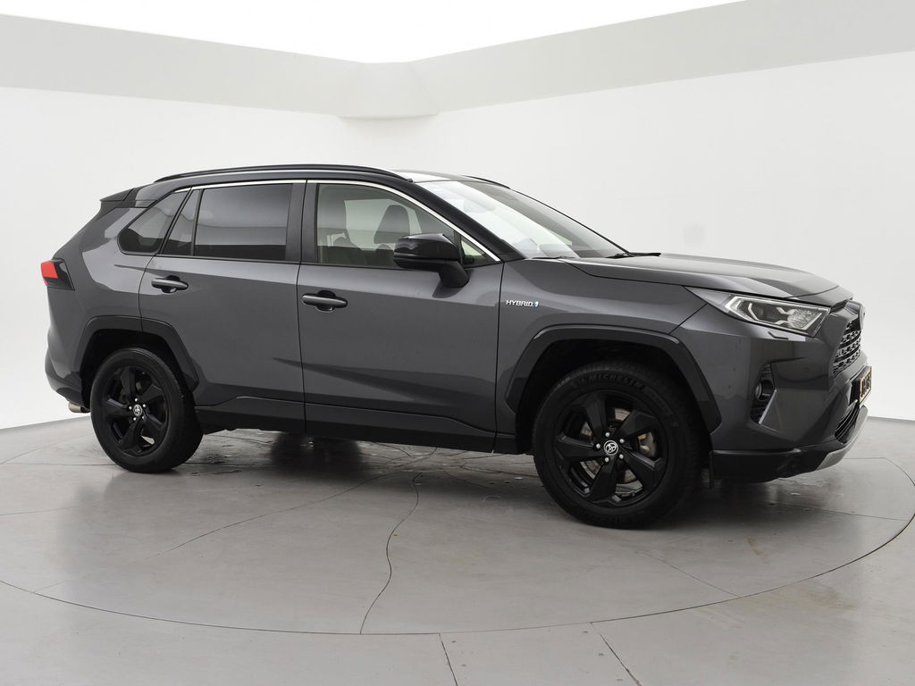 Super complete RAV4 Hybrid 2.5 Automaat 222 PK AWD vierwielaandrijving met 1650 kg trekgewicht op kenteken, Volledig Toyota dealer onderhouden, Bi-Tone uitvoering Donkergrijs + Zwart dak, zwarte buitenspiegels en zwarte 18 inch velgen, Zwart met blauw half leder interieur, Stoelverwarming, Stuurwielverwarming, Achteruitrijcamera, Apple Carplay / Android Auto appstreaming Google Maps, Flitsmeister, Spotify, Whatsapp etc, Privacy glass, Adaptive cruise control, Lijnassistentie, Climate control, Bluetooth met audiostreaming, Verwarmde buitenspiegels, Elektrische achterklep, DAB+ digitale radio, Elektrische stoelverstelling, Parkeersensoren voor + achter, Full LED koplampen, LED achterlichten, Elektrische voorruitverwarming,