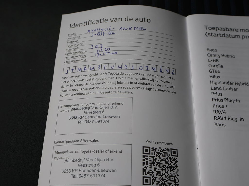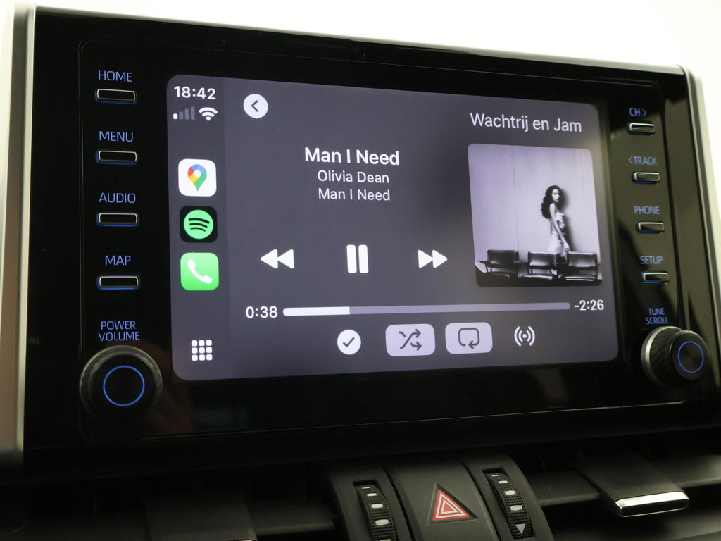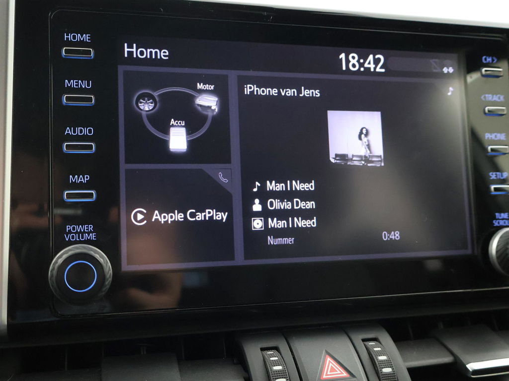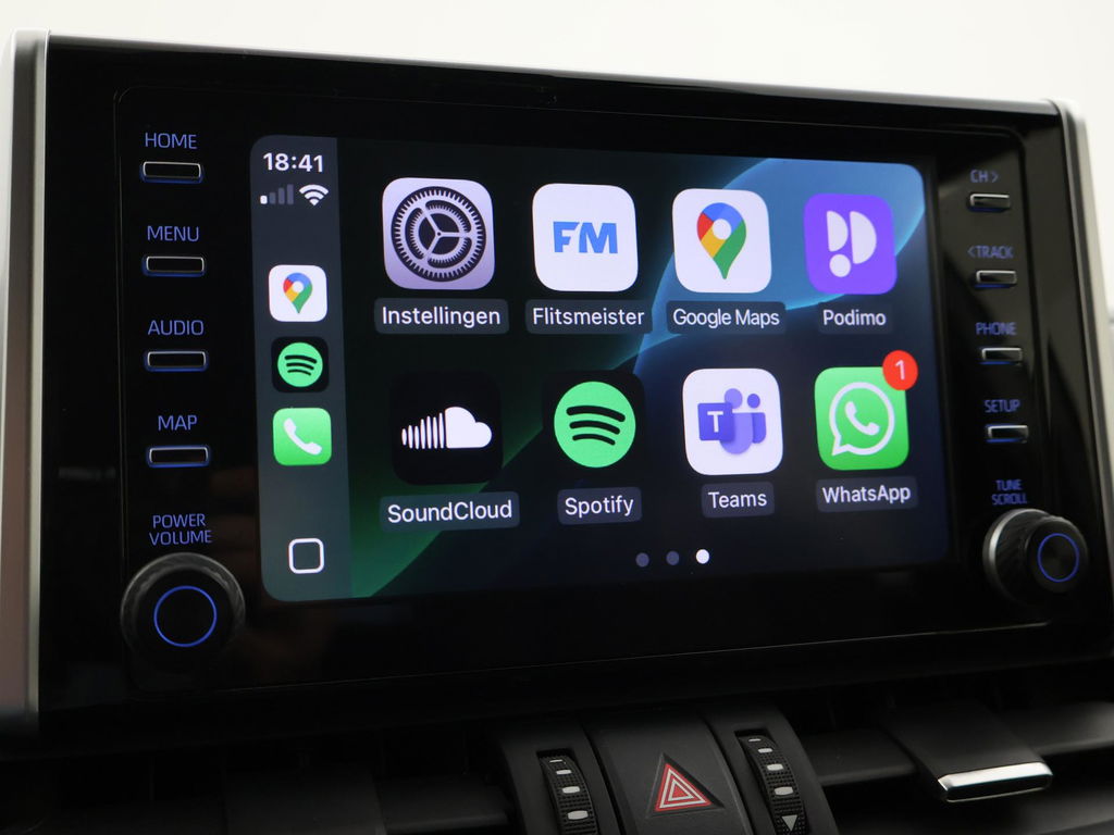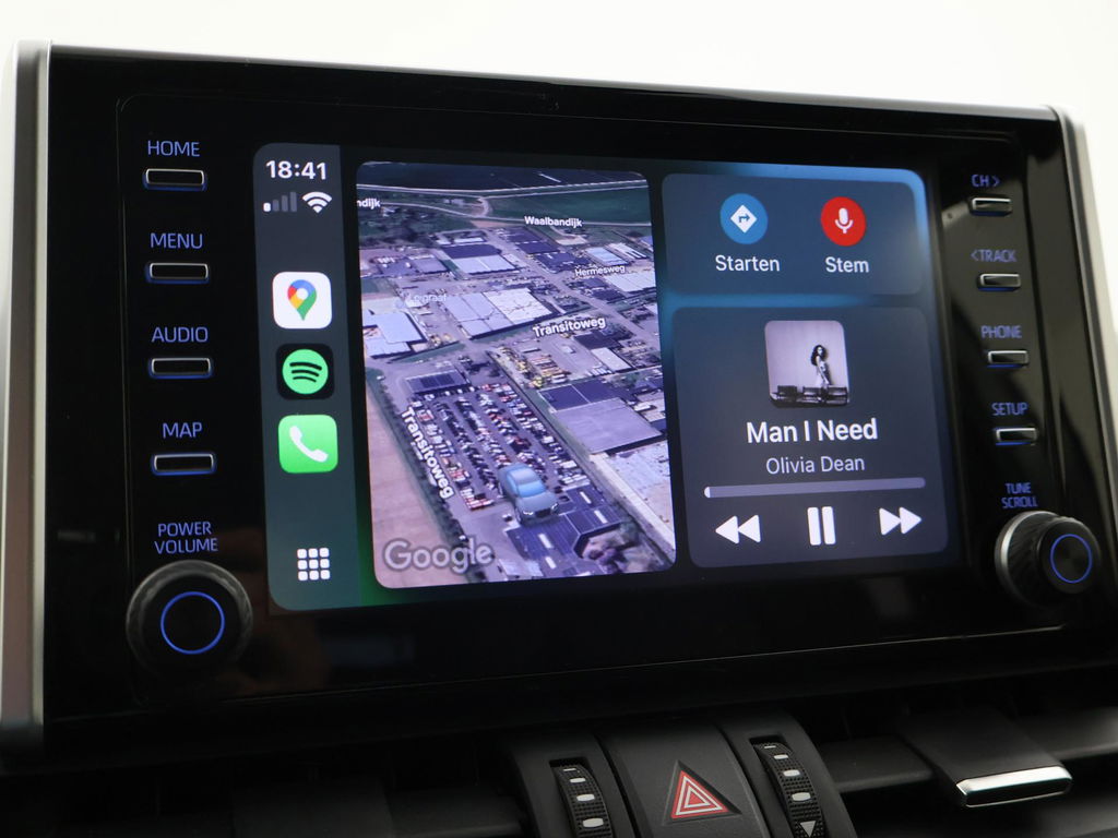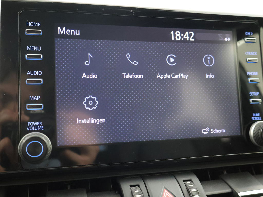 Super complete RAV4 Hybrid 2.5 Automaat 222 PK AWD vierwielaandrijving met 1650 kg trekgewicht op kenteken, Volledig Toyota dealer onderhouden, Bi-Tone uitvoering Donkergrijs + Zwart dak, zwarte buitenspiegels en zwarte 18 inch velgen, Zwart met blauw half leder interieur, Stoelverwarming, Stuurwielverwarming, Achteruitrijcamera, Apple Carplay / Android Auto appstreaming Google Maps, Flitsmeister, Spotify, Whatsapp etc, Privacy glass, Adaptive cruise control, Lijnassistentie, Climate control, Bluetooth met audiostreaming, Verwarmde buitenspiegels, Elektrische achterklep, DAB+ digitale radio, Elektrische stoelverstelling, Parkeersensoren voor + achter, Full LED koplampen, LED achterlichten, Elektrische voorruitverwarming,