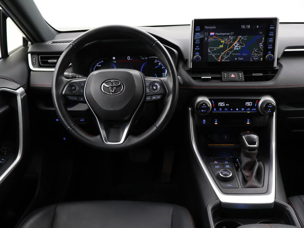 RAV4 2.5 Plug-in hybrid 306 PK Automaat AWD 4WD, Volledig Toyota dealer onderhouden, Style uitvoering met zwart/rood half leder interieur, Trekhaak met 1500 kg trekgewicht op kenteken, Achteruitrijcamera, Full LED koplampen, Dubbel glas / extra isolerend glas, Stoelverwarming voor + achterin, Apple Carplay / Android Auto appstreaming Google Maps, Flitsmeister, Spotify, Whatsapp, LED achterlichten, Parkeersensoren voor + achter, DAB+ digitale radio, Adaptive cruise control, Lijnassistentie, Dodehoek assisentie, Climate control, Privacy glass, Keyless-entry, Alarm klasse 3 + peilzender met KIWA certificaat.