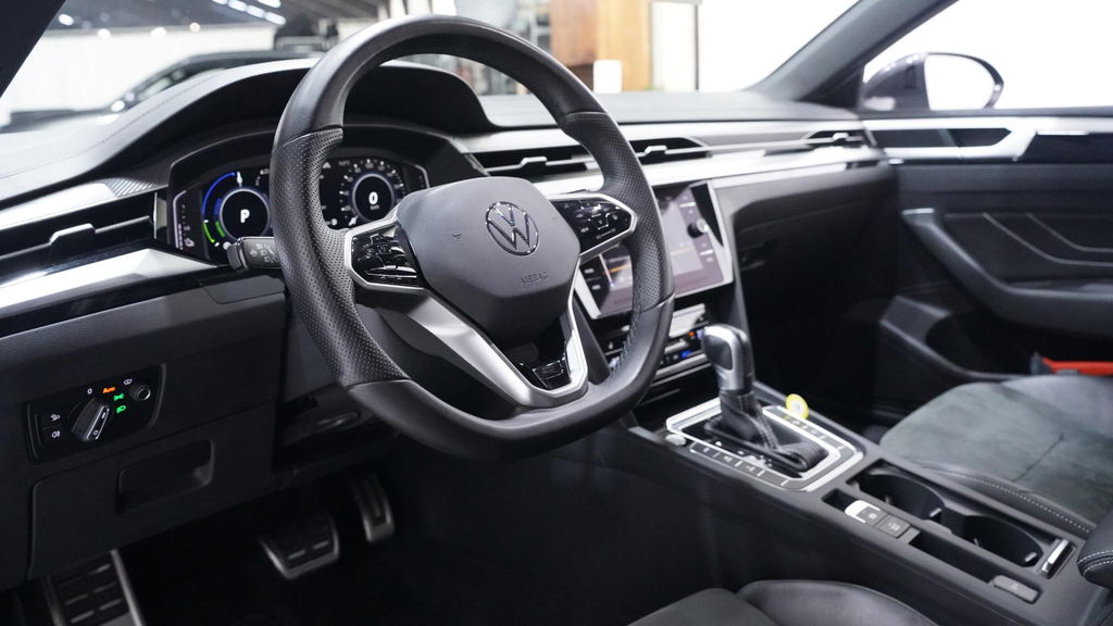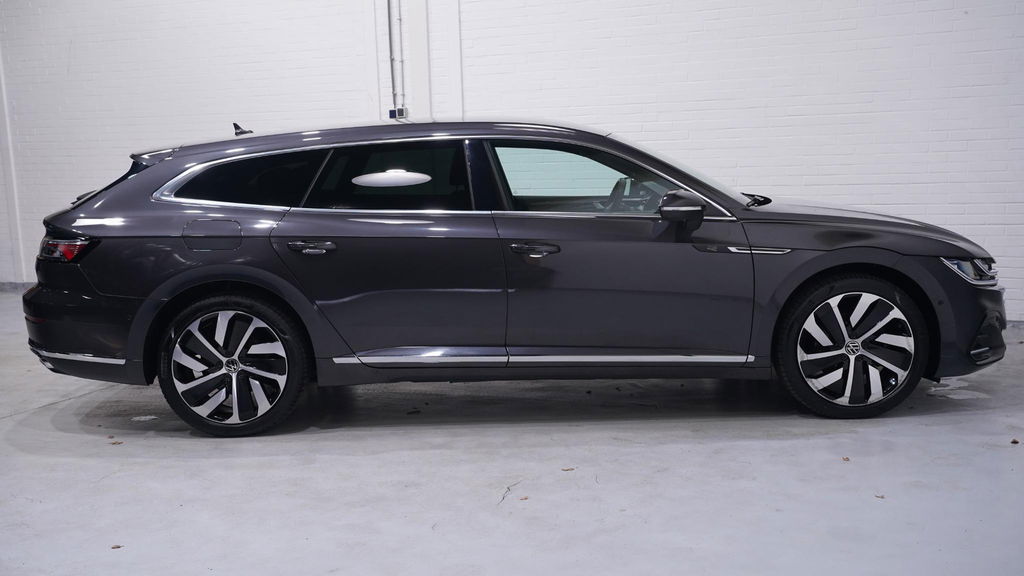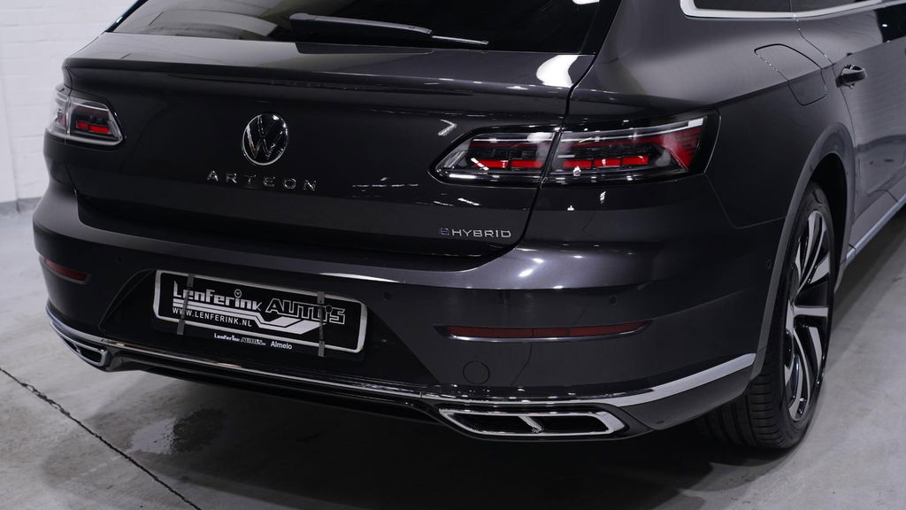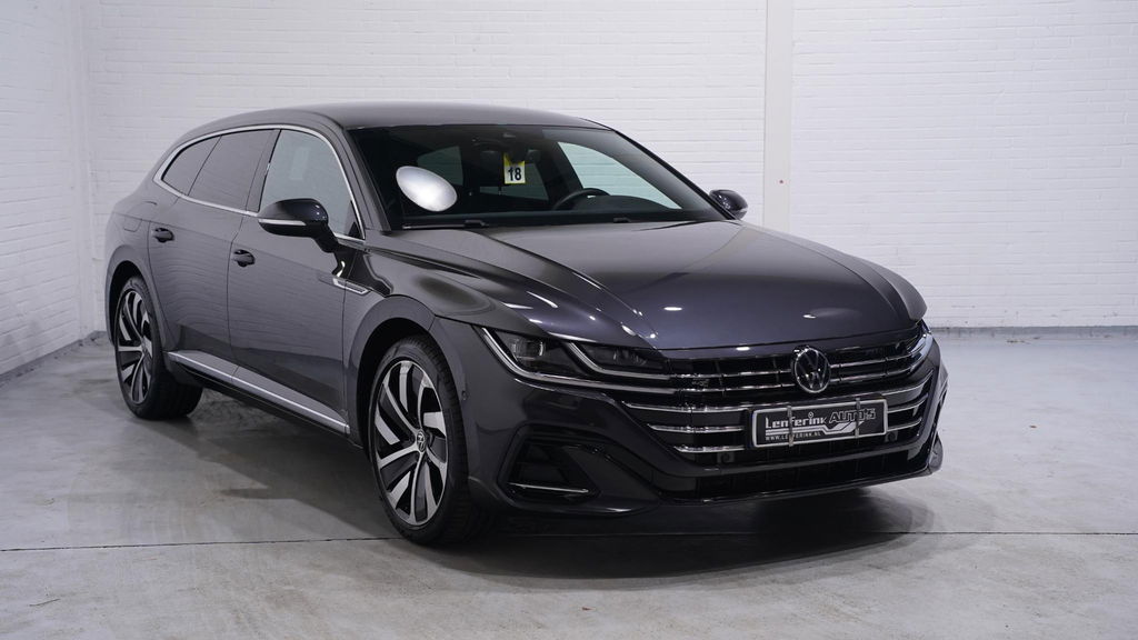 Een Volkswagen pik je er altijd uit, want je herkent hem aan zijn dynamische styling, aan zijn degelijke bouw en aan zijn sportieve lijnen. Dat geldt ook voor deze Arteon Shooting Brake, die met zijn eigentijdse design helemaal past in het moderne straatbeeld. Sportief van buiten, high tech van binnen: de R-Line styling geeft deze Volkswagen Arteon Shooting Brake een te gekke uitstraling! Zoals het een echte Volkswagen betaamt, verkeert deze Arteon Shooting Brake in uitstekende conditie. Deze hybride auto heeft een sterke, zuinige elektromotor én een verbrandingsmotor. Kortom: uitstekende rijprestaties en een veel lager brandstofgebruik. Zelfs op de koudste dagen zorgt het verwarmbare stuurwiel, de voorstoelen en de achterbankverwarming ervoor dat u en uw passagiers het nooit koud hebben in deze luxueuze auto. Lekker zitten doet u in de comfortstoelen van deze auto. Een praktische extra is de elektrisch bedienbare achterklep die opent en sluit met een druk op de knop. De slimme koplampen gebruiken de allernieuwste matrix LED-verlichting. Altijd maximaal zicht, nooit verblinding bij de tegenligger. Ook 19 inch lichtmetalen velgen, adaptief dempingsysteem, warmtewerend glas, in delen neerklapbare achterbank, LED-achterlichten en verstelbare lendensteunen horen tot de voorzieningen op deze auto.