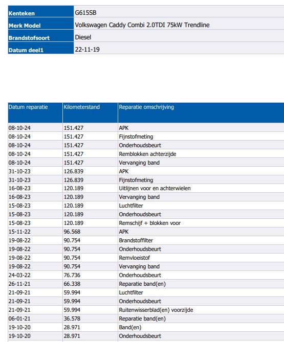 | Onderhoudsboekjes: | Ja, aanwezig |