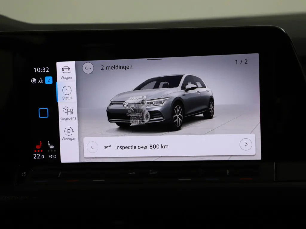 Deze Golf is rijk uitgerust met o.a. IQ-opties, navigatie, LED-verlichting, voorstoelen + stuurverwarming (Winterpakket), rijstrook- en fileassistent, 17" lichtmetaal, Apple CarPlay/Android Auto, en een volledig digitaal instrumentenpaneel.
