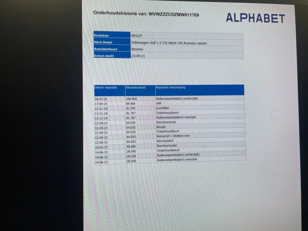 - Onderhoudsboekje aanwezig