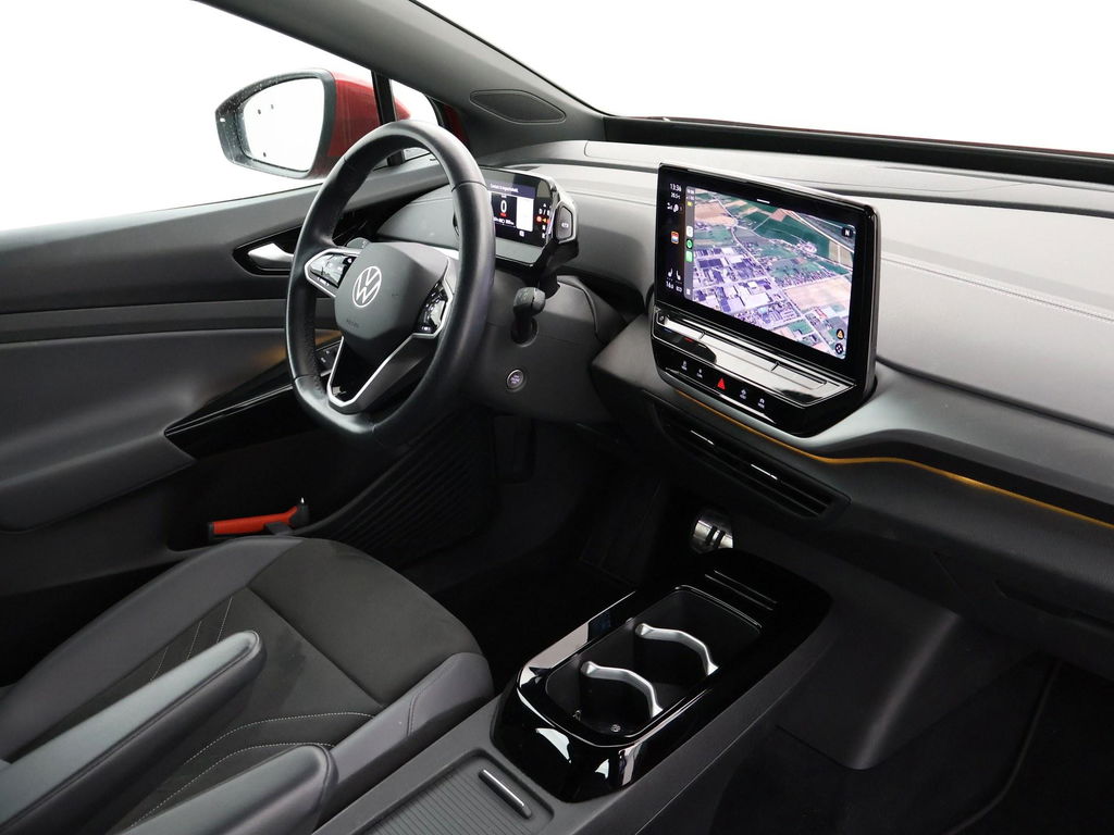 Origineel Nederlandse auto van 12-2022 in de duurste exterieurkleur: Kings Red metallic met zwart dak. Super uitstraling auto. Pro uitvoering met de 77 kWh accu met 174 PK vermogen en 518 km actieradius WLTP opgave. 19 inch lichtmetalen velgen, Style pakket met luxer interieur, Stuurwielverwarming, Stoelverwarming, Sfeerverlichting met verschillende kleuren, Adaptive cruise control, Achteruitrijcamera, Apple Carplay / Android Auto appstreaming Google Maps, Flitsmeister, Whatsapp etc, Climate control, Bluetooth met audiostreaming, LED verlichting voor en achter, Half leder interieur, Zwarte hemelbekleding, Parkeersysteem met sensoren voor + achter en automatisch inparkeren, Skiluik, Sportpakket met sportonderstel en variabele stuuroverbrenging, IQ.Drive veiligheidssystemen, Botswaarschuwing, Verkeersbordenherkenning, Vermoeidheidsherkenning, Elektronische voorruitverwarming, 2 USB-C laders achterin, Elektrisch inklapbare buitenspiegels, Air Care luchtkwaliteitssysteem.