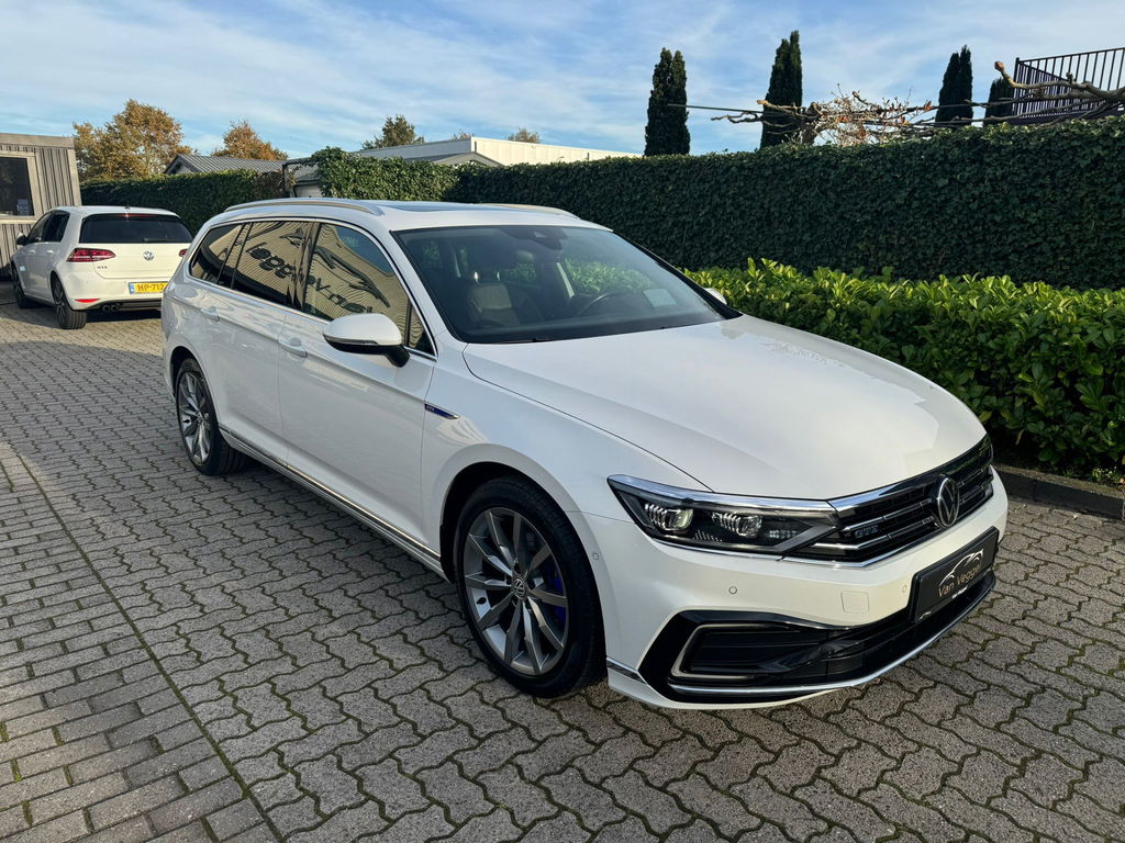Een Duitse auto biedt altijd iets meer: betere rijeigenschappen, meer comfort, meer bouwkwaliteit. Het zijn de degelijkheid van de constructie en de doordachtheid van het ontwerp die ervoor zorgen dat een Volkswagen jarenlang begeerlijk blijft. Zoals deze Passat Variant, bijvoorbeeld. Elektrisch rijden of toch benzine? Voor allebei is iets te zeggen. Daarom biedt de hybride motor van deze Volkswagen Passat Variant de keus. U past de stoelen moeiteloos aan, ze zijn elektrisch in te stellen en hebben bovendien een geheugen. De elektrische achterklep opent met een druk op de knop, zodat u gemakkelijk toegang heeft tot de bagageruimte. Het glazen panoramadak laat u genieten van een wijds uitzicht en meer lichtinval. Opvallend is de geavanceerde matrix LED-verlichting met daglichtkwaliteit. De koplampen dimmen automatisch het deel van de lichtstraal waar voor- of tegenliggers in rijden. De overige segmenten blijven aan en verlichten de weg maximaal. Bij de zeer complete uitrusting van deze auto behoren ook 17 inch lichtmetalen velgen, zwarte hemelbekleding, donker getint glas achter, in delen neerklapbare achterbank, LED-achterlichten en verstelbare lendensteunen.